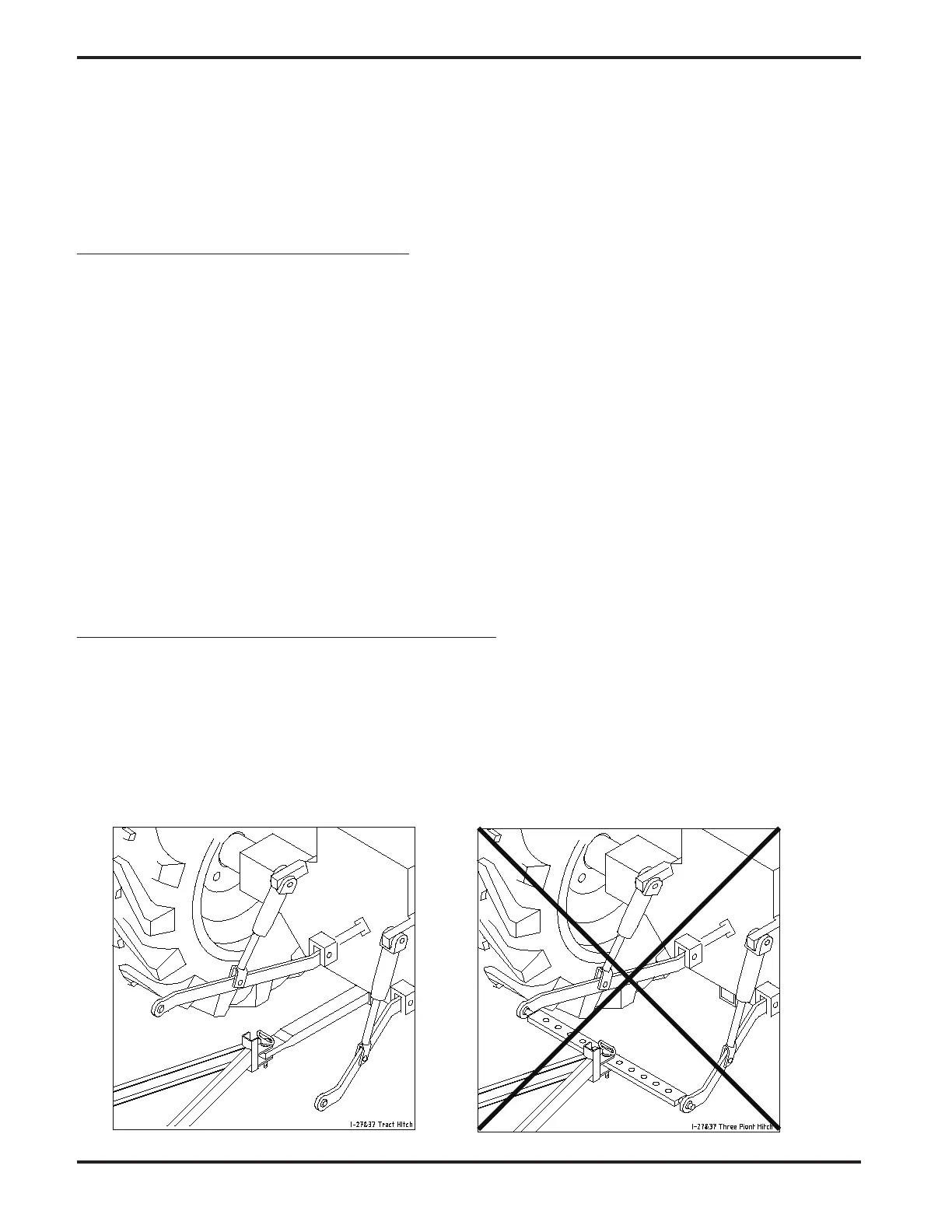 ATTENTION: Do not use a 3-point hitch drawbar on a tractor. Use of a 3-point drawbar is highly