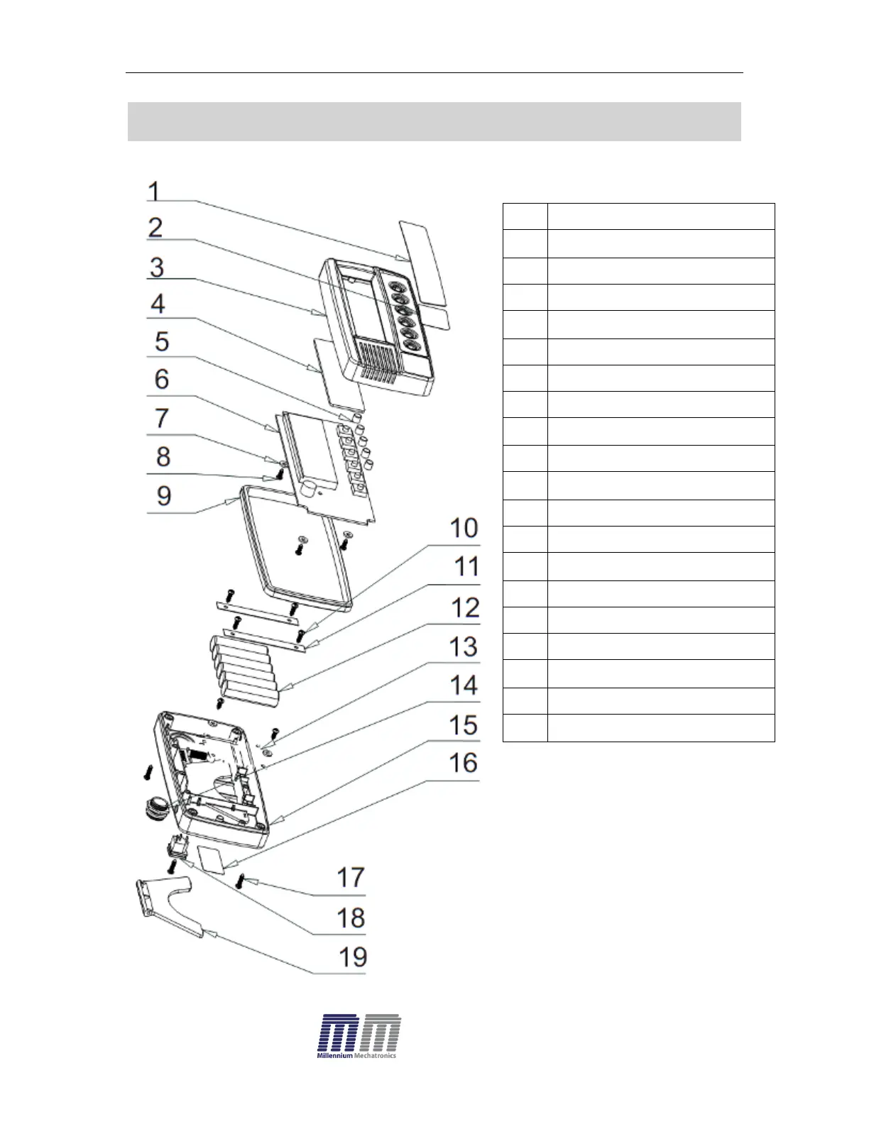 Millenium Mechatronics MI104 - Drawing; Parts List and Diagram