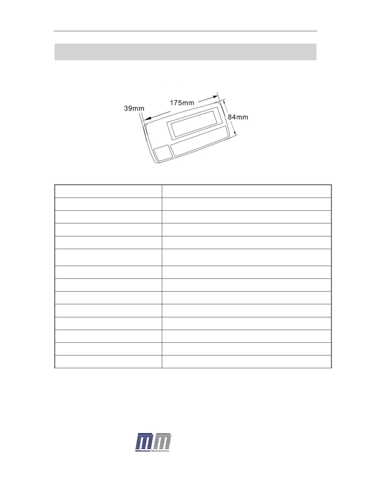 Millenium Mechatronics MI104 - Specifications
