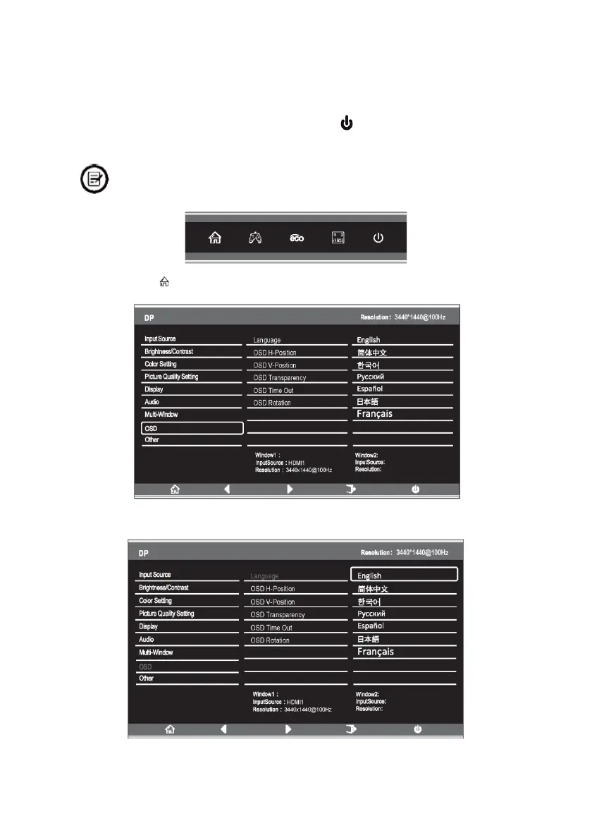 2. Pulse M para acceder al menú OSD y pulse ▼ para elegir LANGUAGE.