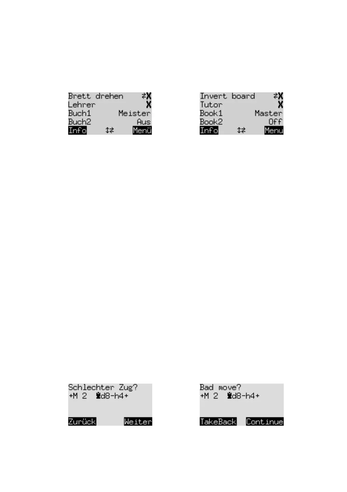 If the tutor is ‘on’ (a) and the computer thinks you have made a weak move, the display shows a
