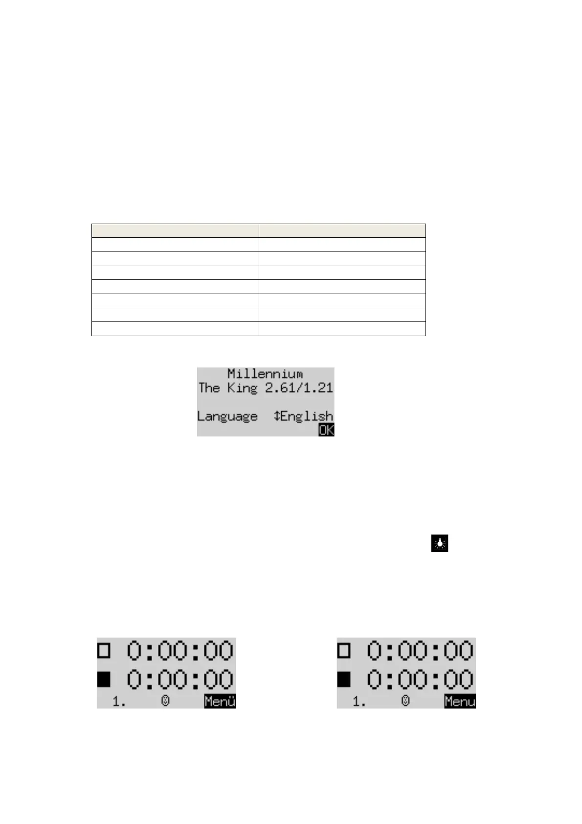 After you connect the power, the display shows the word ‘English’ together with the version number of the