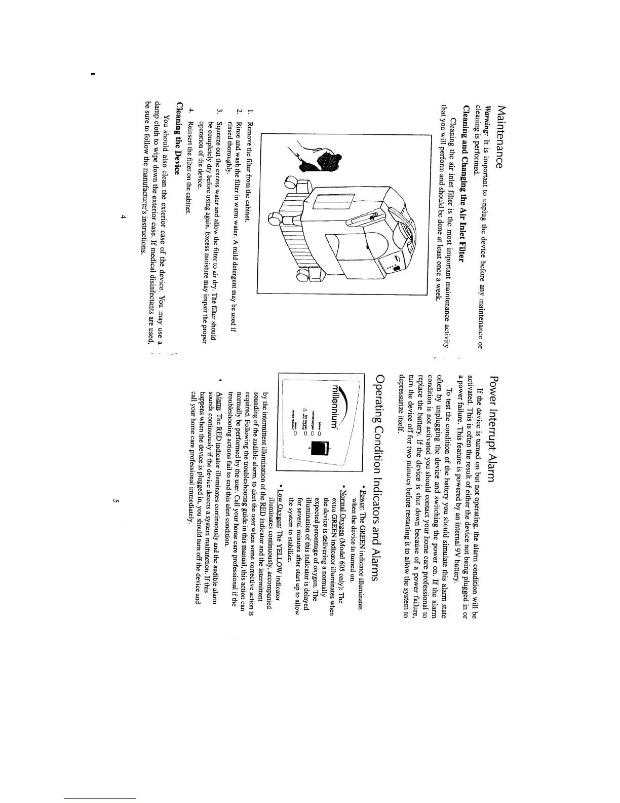 Millennium M10 - Maintenance; Cleaning and Changing the Air Inlet Filter; Cleaning the Device; Power Interrupt Alarm