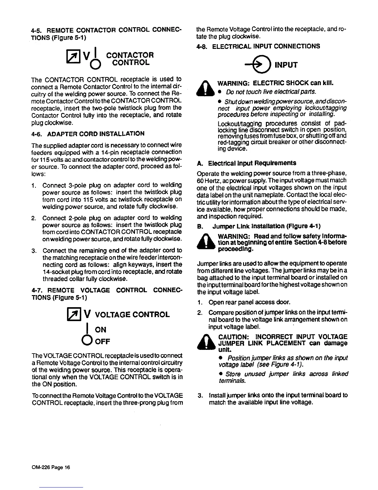 Miller Electric MP-30E - Remote Contactor Control Connections; Remote Voltage Control Connections