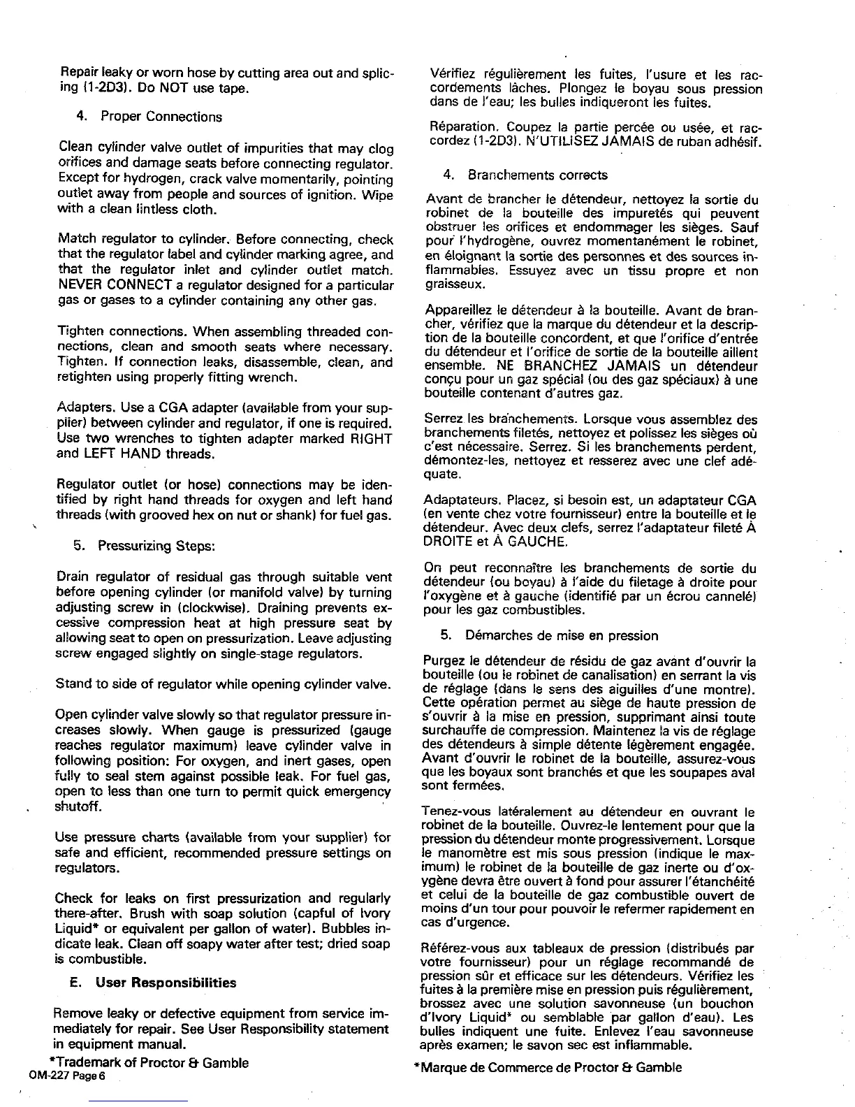 Miller Electric MP-45E - Proper Connections; Pressurizing Steps; User Responsibilities