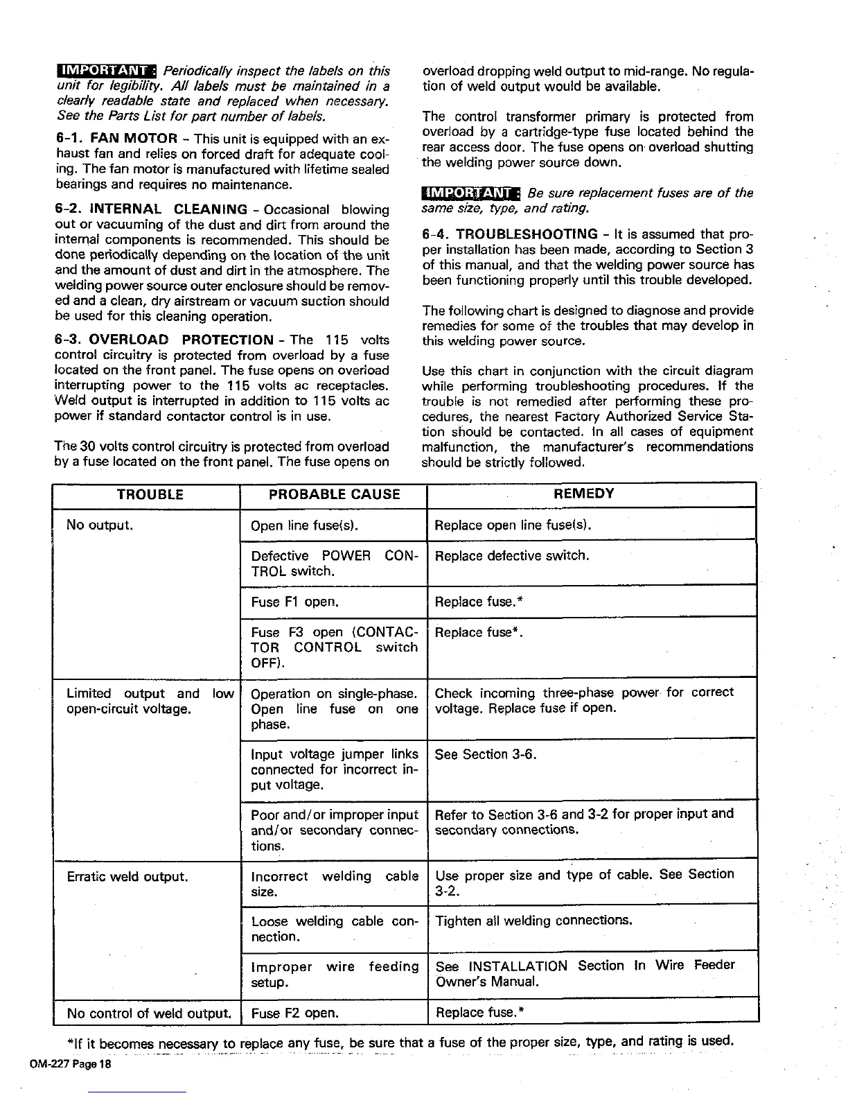 Miller Electric MP-45E - SECTION 6 - MAINTENANCE & TROUBLESHOOTING; Troubleshooting Guide