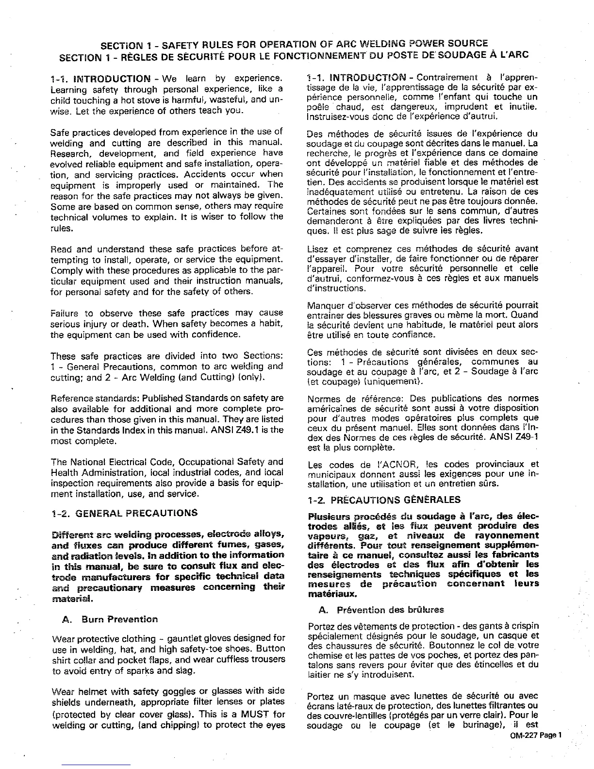 Miller Electric MP-45E - SECTION 1 - SAFETY RULES FOR OPERATION OF ARC WELDING POWER SOURCE; General Precautions