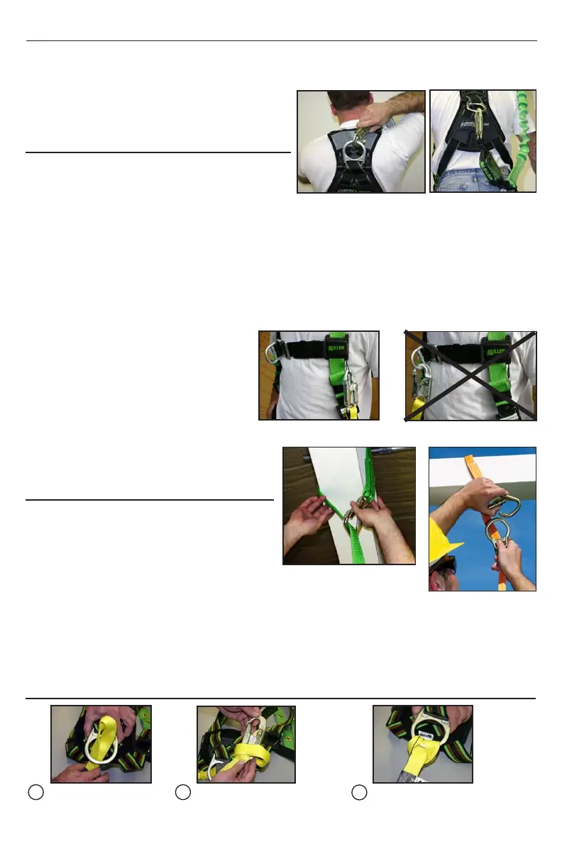 cuerpo (el anillo “D” posterior). Cuando utilice una cuerda de seguridad de dos perneras, sólo conecte el