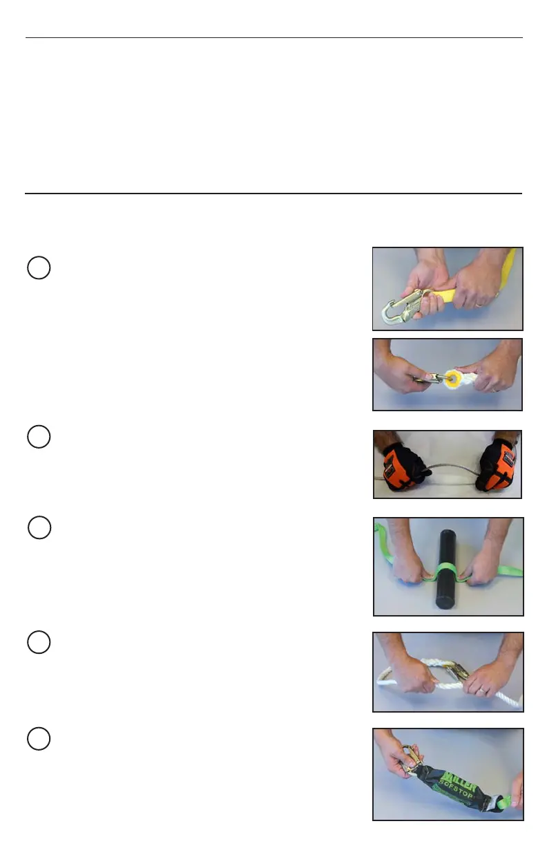 While rotating the wire rope lanyard, watch for cuts, frayed