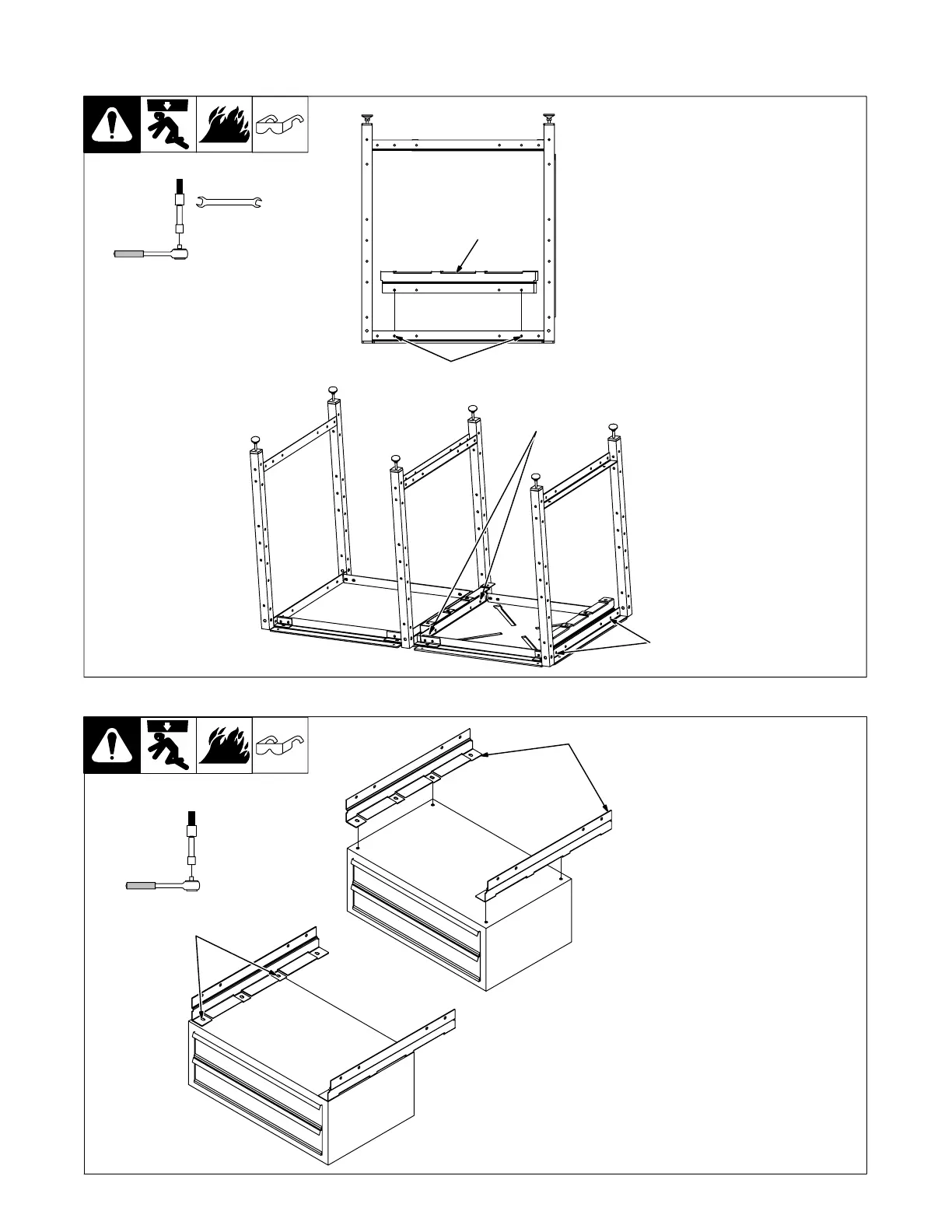G. Installing Dust tray Rails To Optional Tool Chest (Dust Tray Rails Are For An X-pattern Top Only)