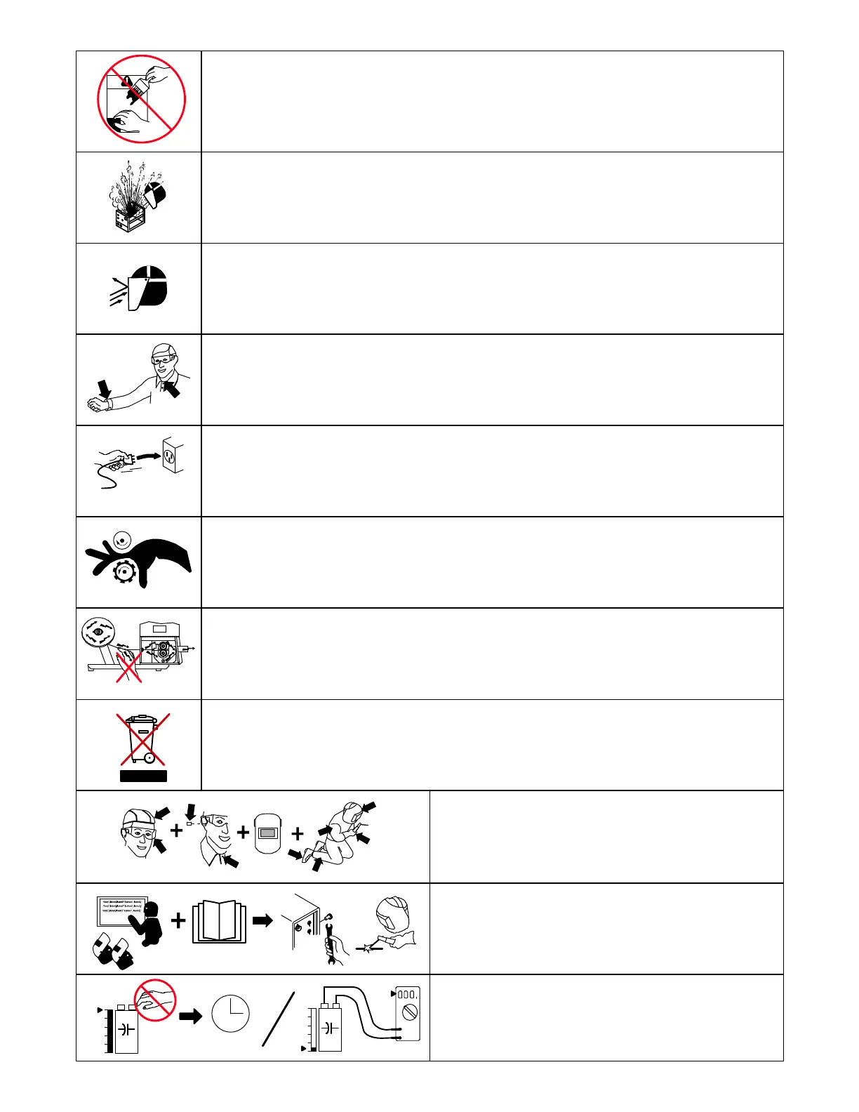 Welding wire and drive parts are at welding voltage during operation − keep hands and metal objects away.