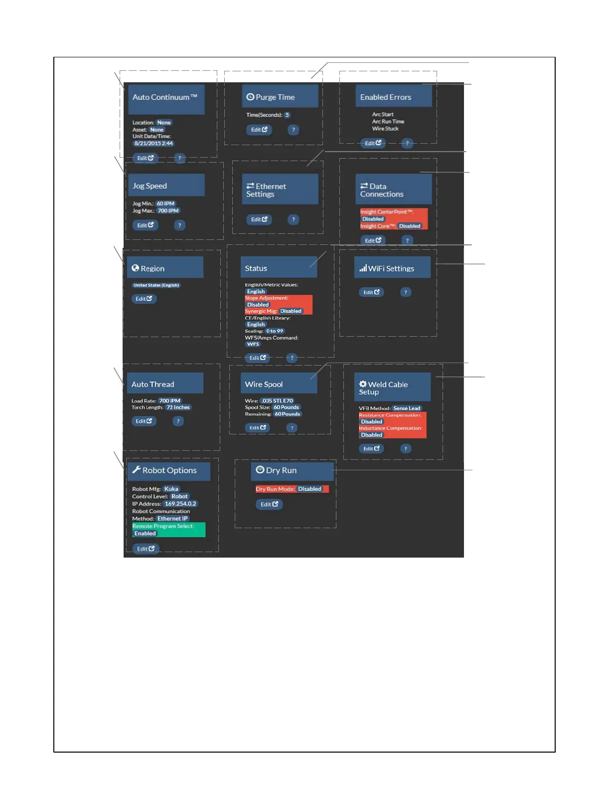 Edit button allows robot options to be