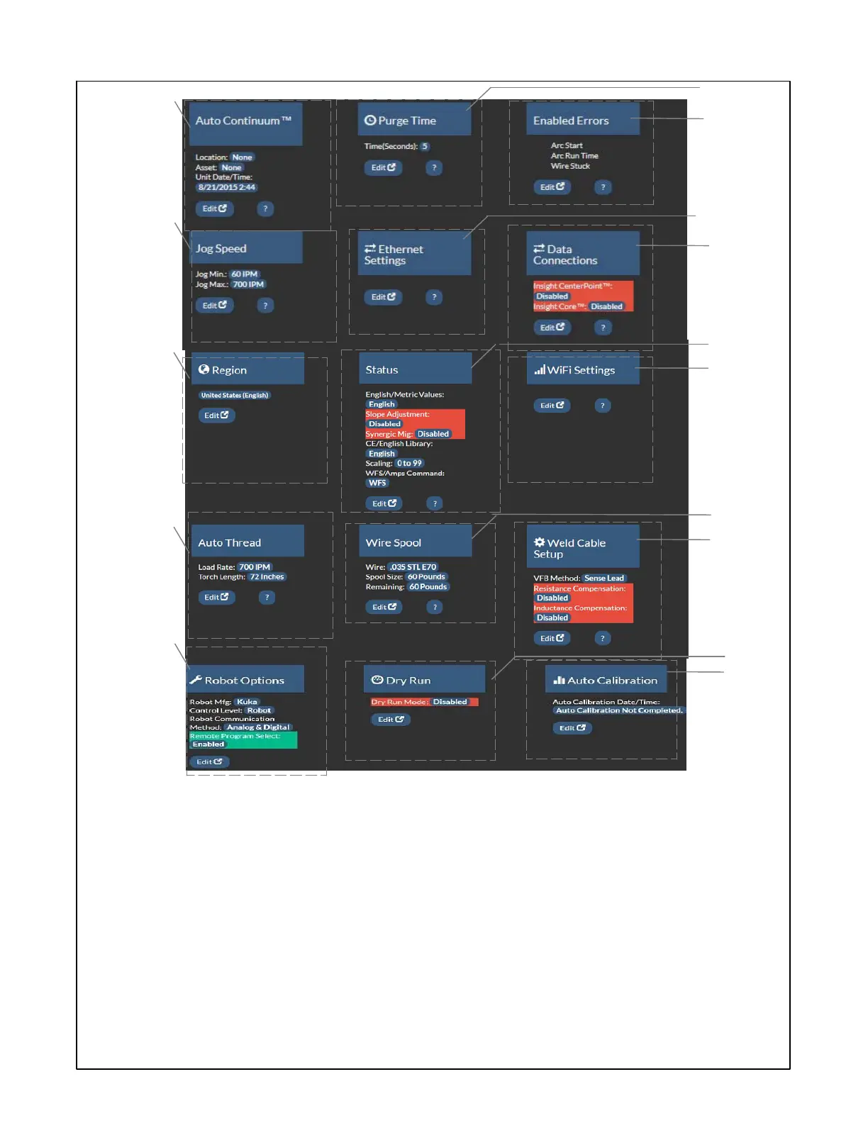 Edit button will display last auto calibration,