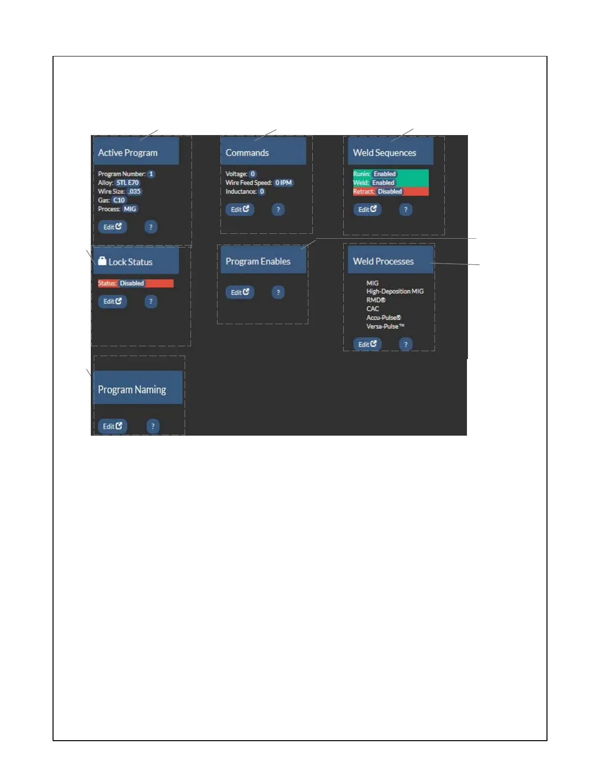 Displays available weld processes. Edit but-