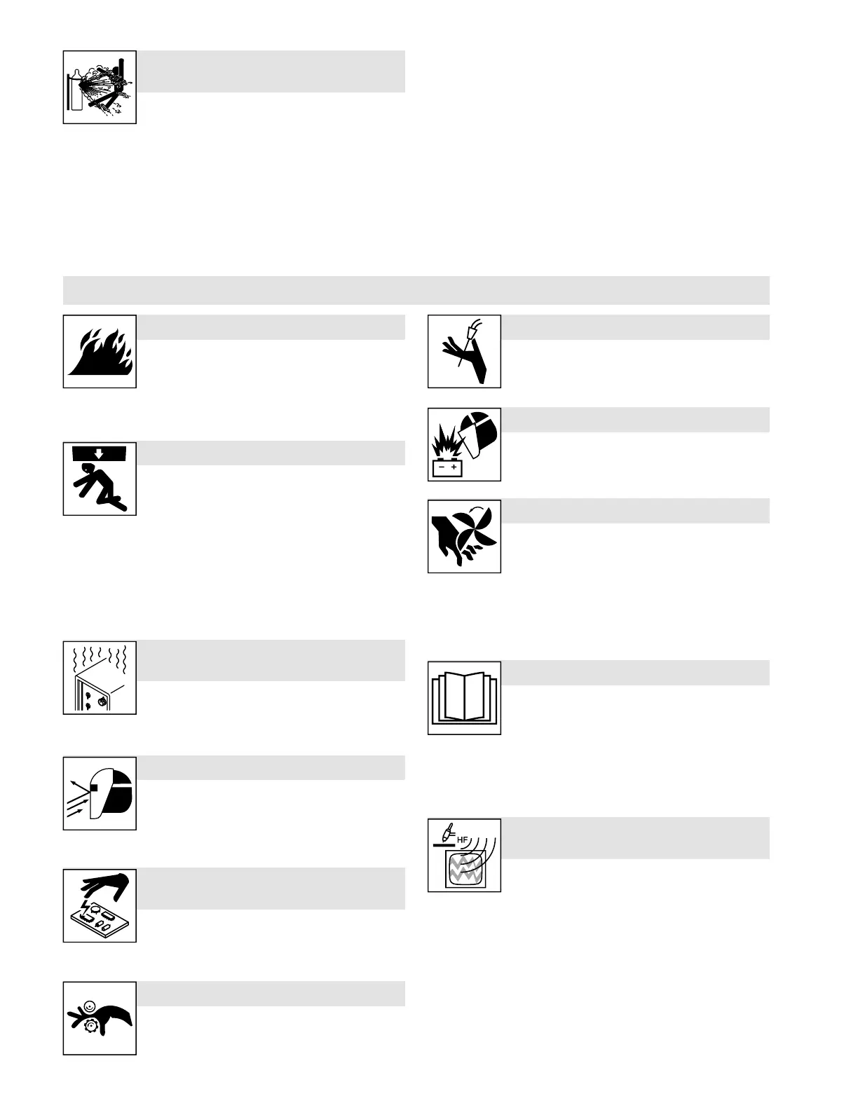 cal shocks, physical damage, slag, open flames, sparks, and arcs.