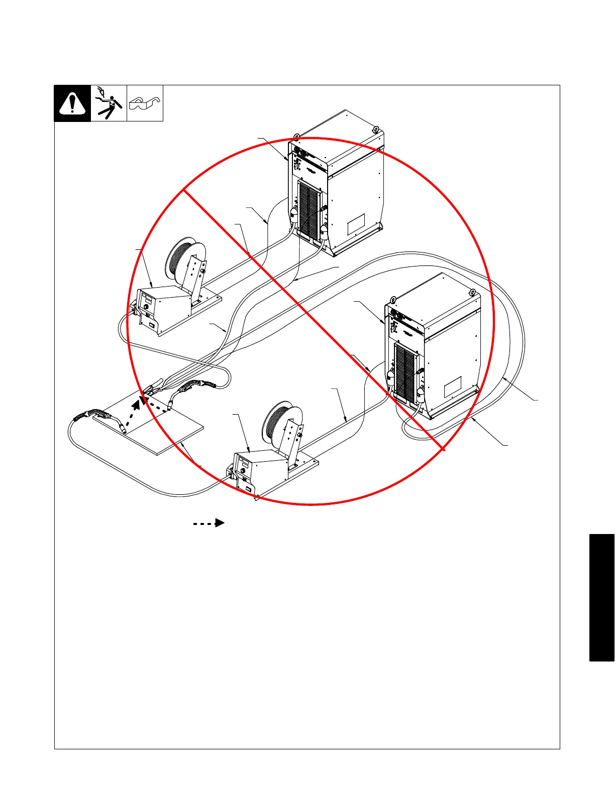 9-6. Voltage Sensing Lead And Work Cable Connections For Multiple Welding Arcs