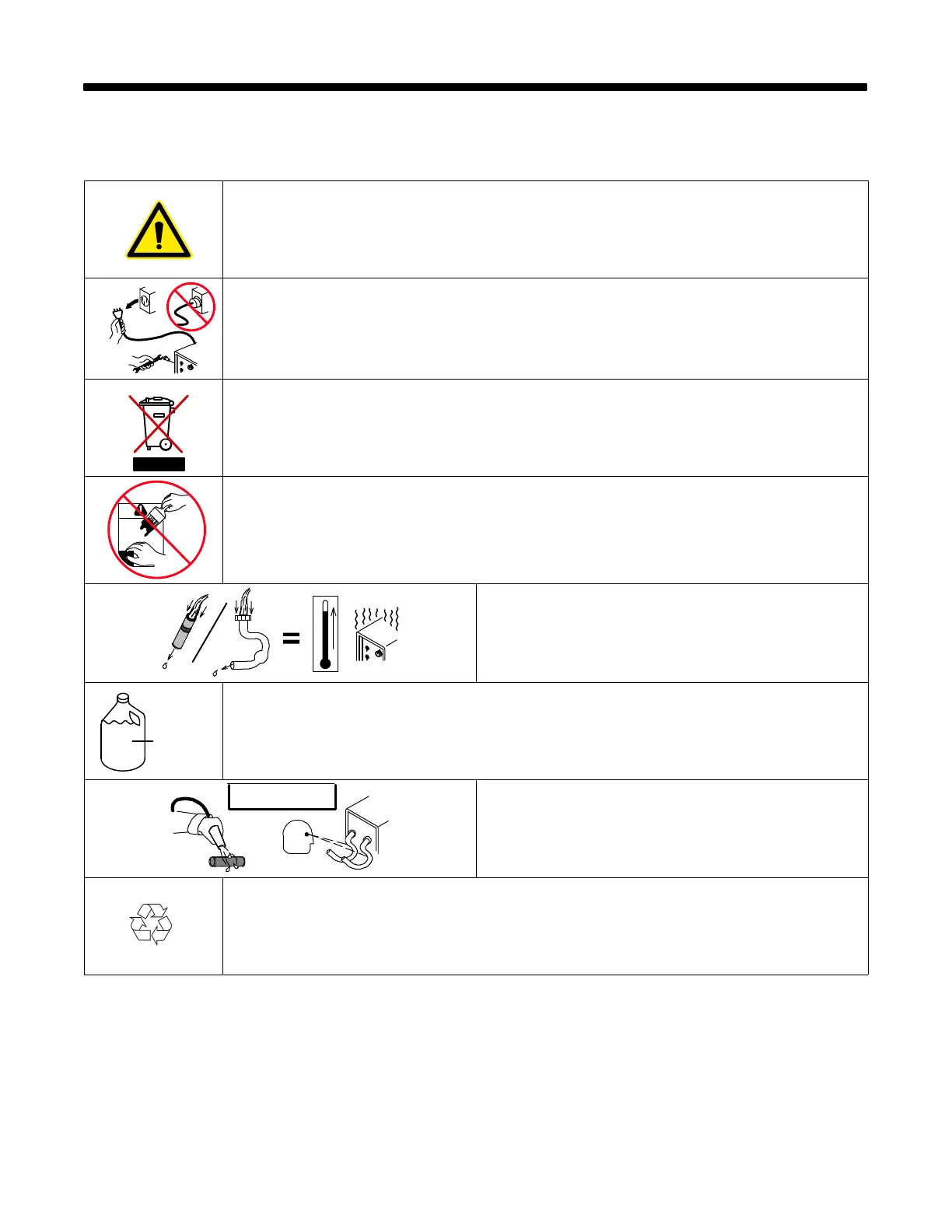 Warning! Watch Out! There are possible hazards as shown by the symbols.