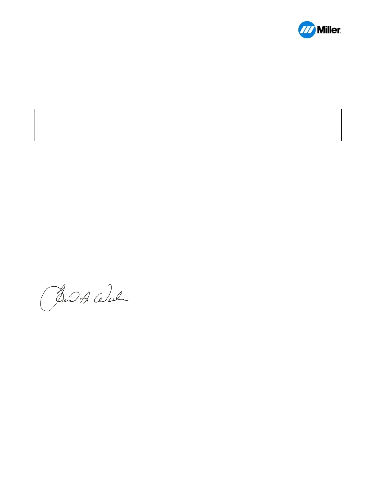 MILLER Electric Mfg. Co., 1635 Spencer Street, Appleton, WI 54914 U.S.A. declares that the