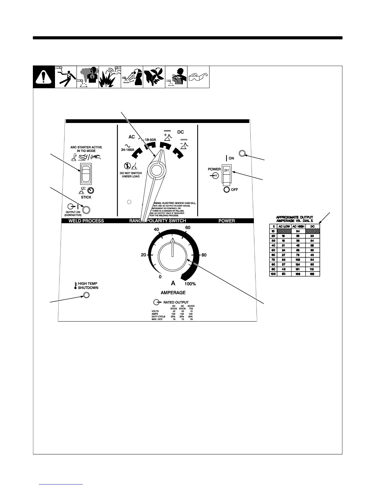 output at Amperage control setting.