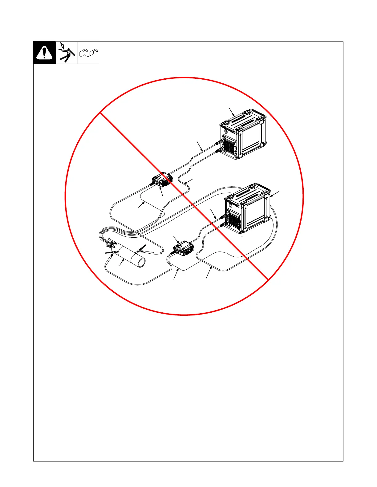 Weld cables should not be crossed.