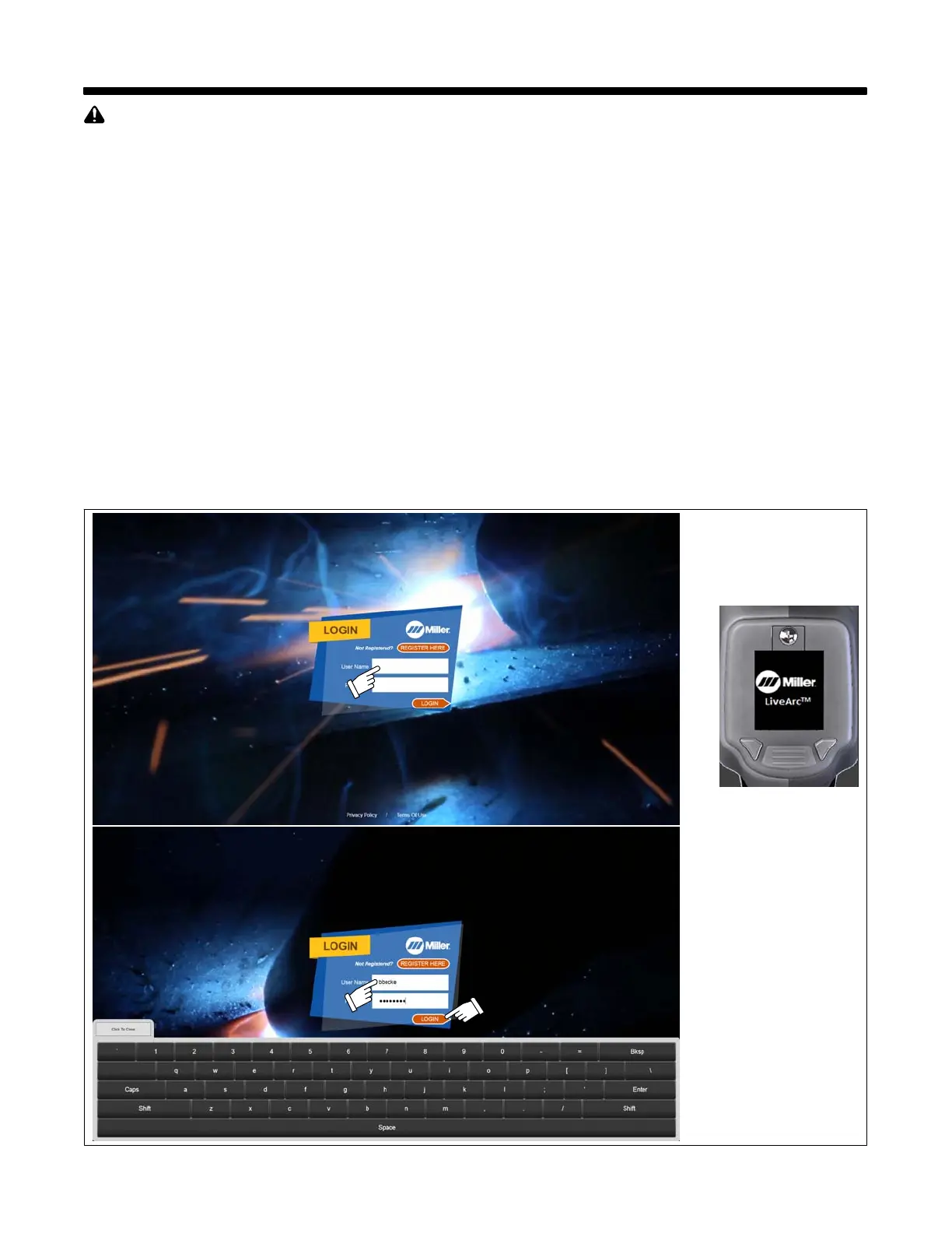 1. Touch User Name window to access keyboard.