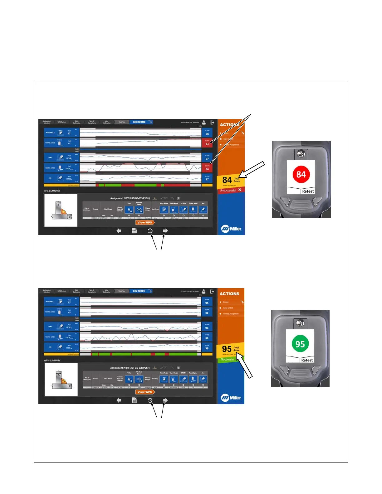 90 for Miller assignments), examine scores in individual categories (gun angle, gun speed, contact tip to work distance [CTWD], etc.) to determine