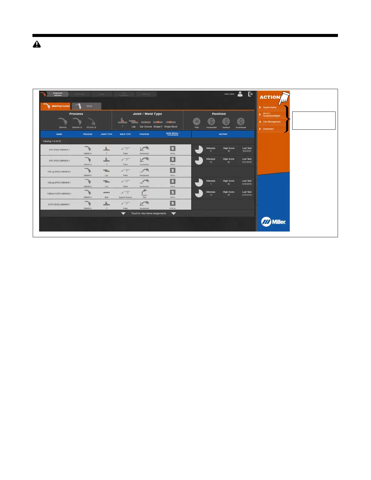 Welding-related hazards are present when using the welding training system. Read the welding power source and wire feeder Owner’s