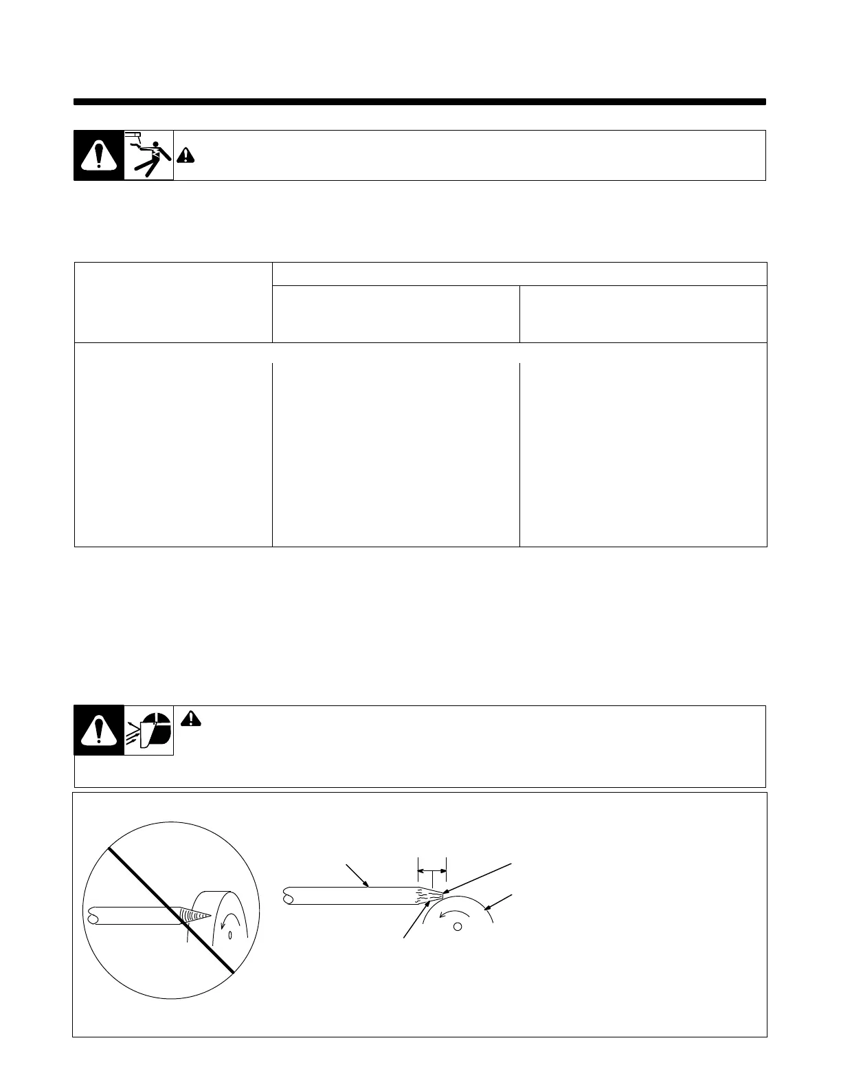 Grinding the tungsten electrode produces dust and flying sparks which can cause injury and start fires.