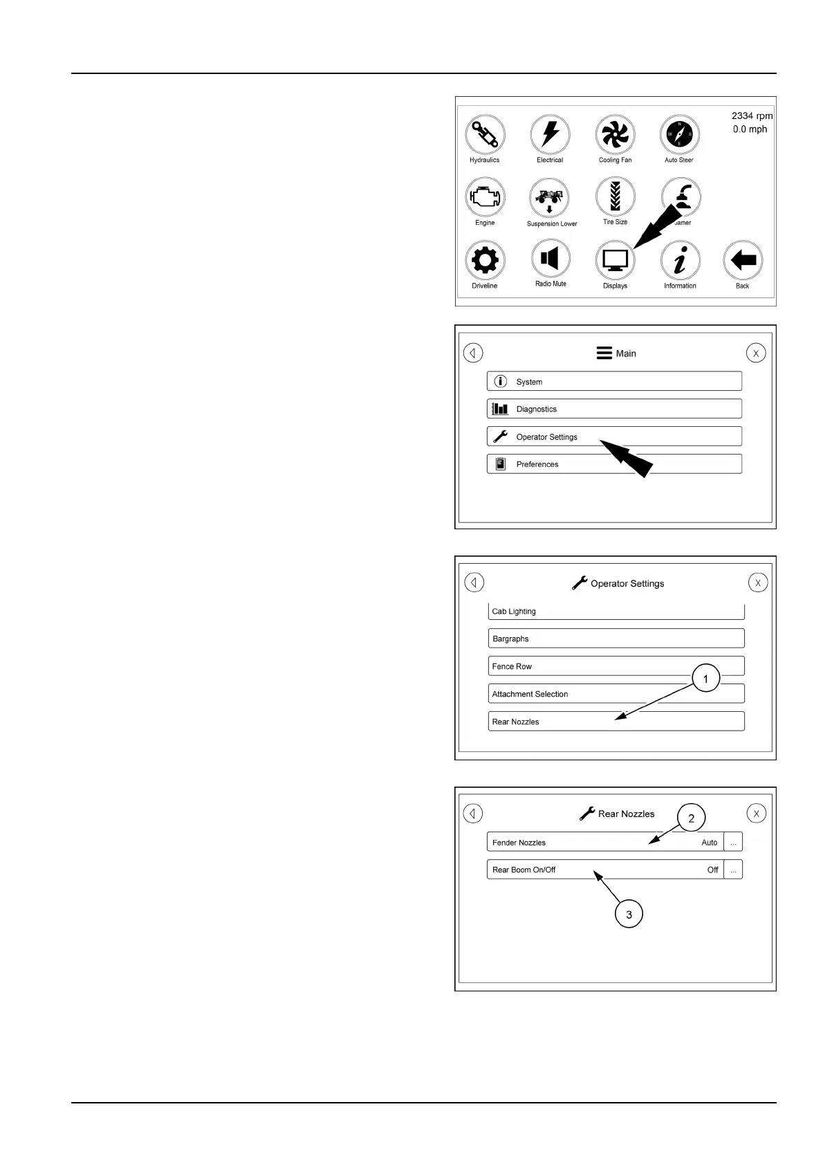 Nozzles(2)orRearBoomOn/Off(3).