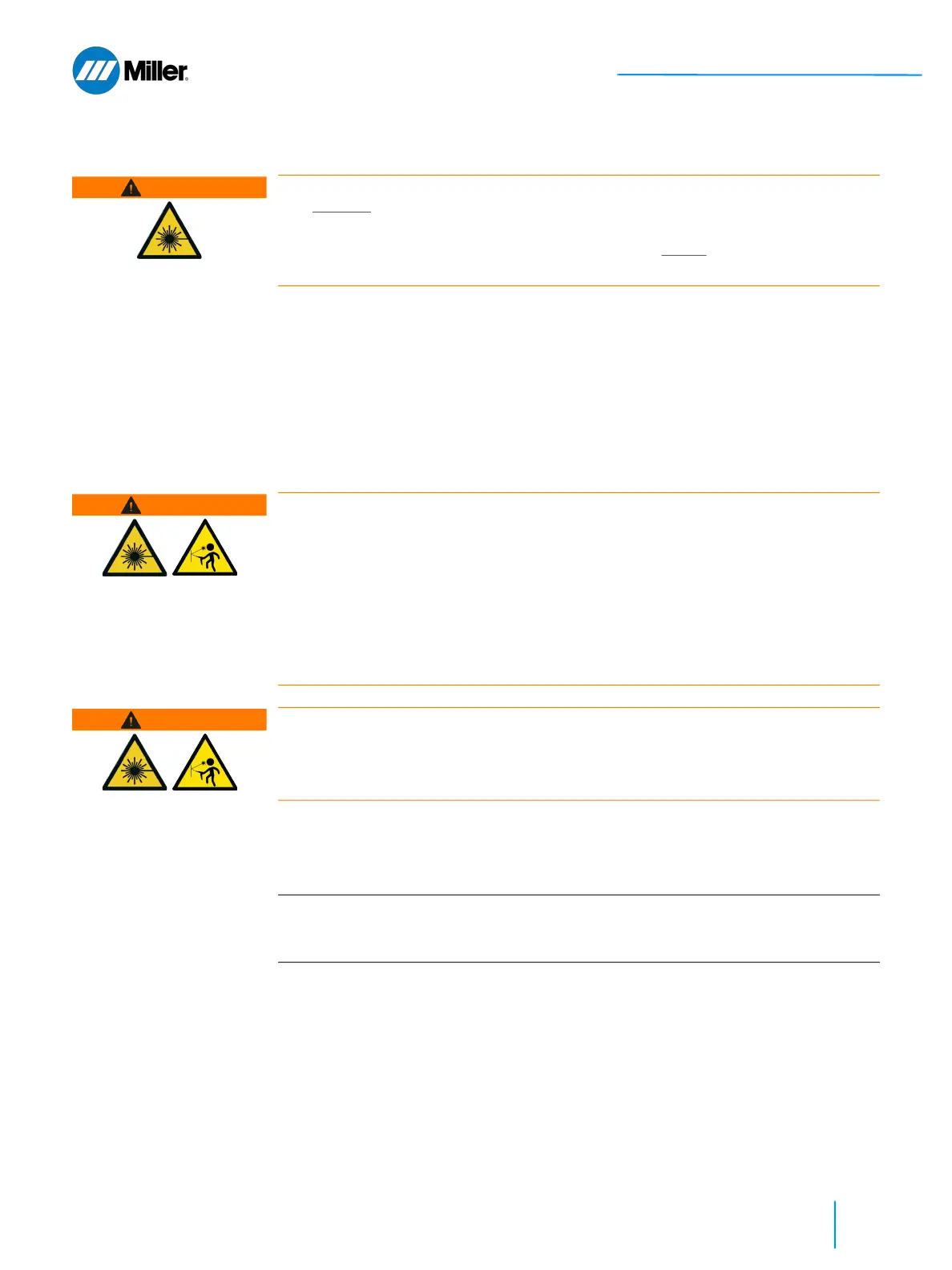 For safety reasons, Miller recommends that OptX device operators only use Miller