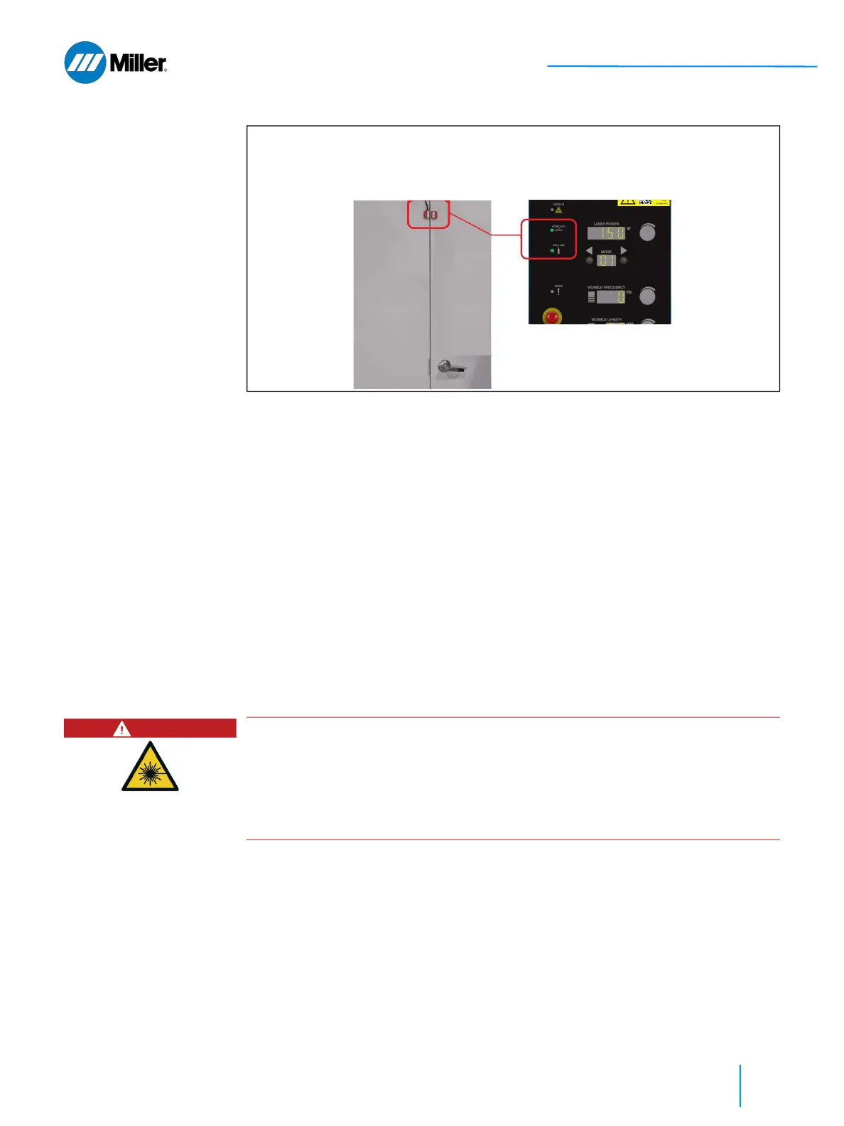 safety interlocks will open. Confirm that the Interlock LED indicator on the