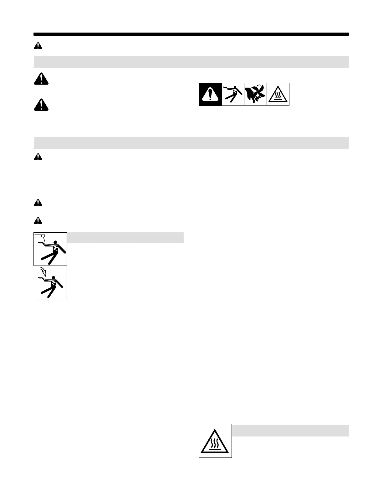 SHOCK, MOVING PARTS, and HOT PARTS hazards. Consult sym-