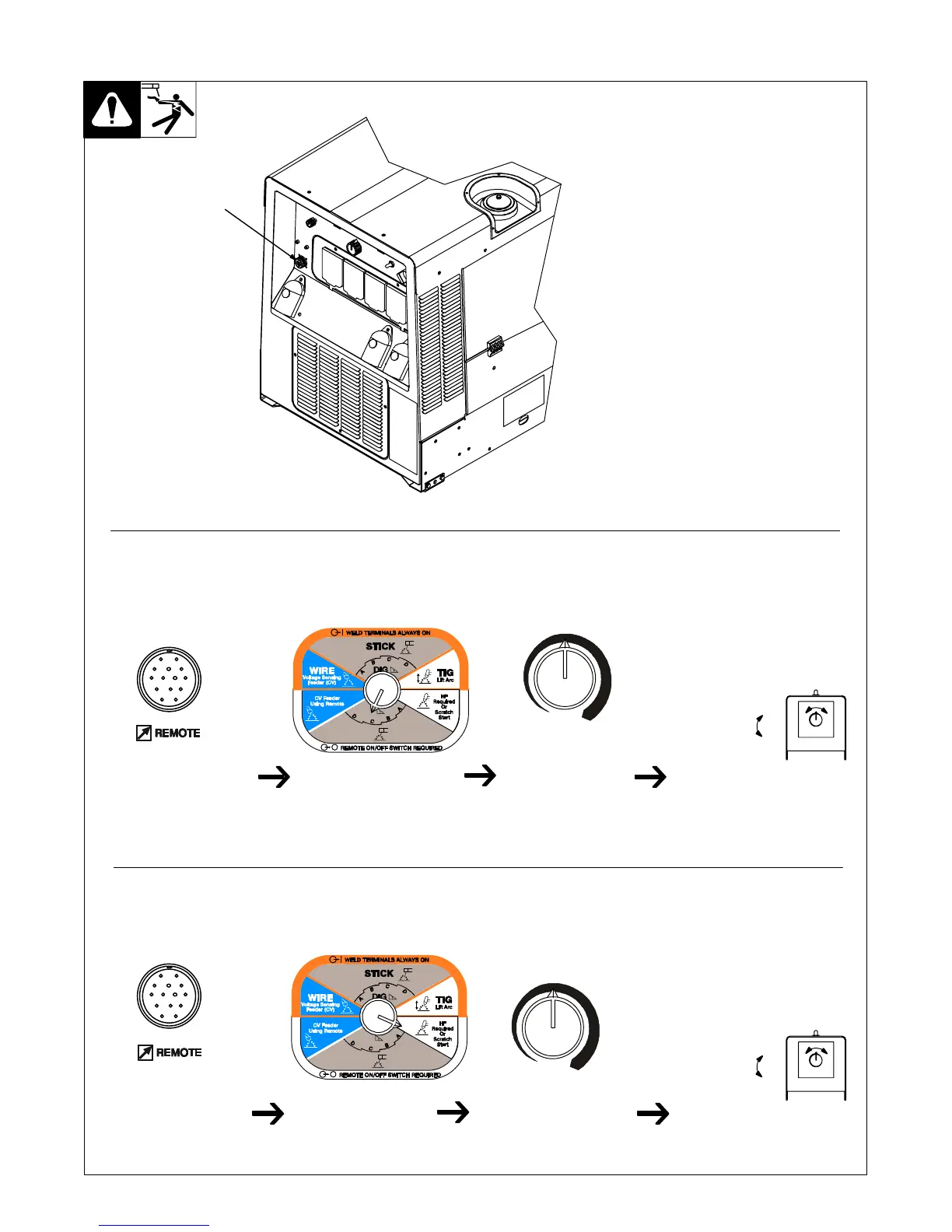 age/amperage control to the remote con-