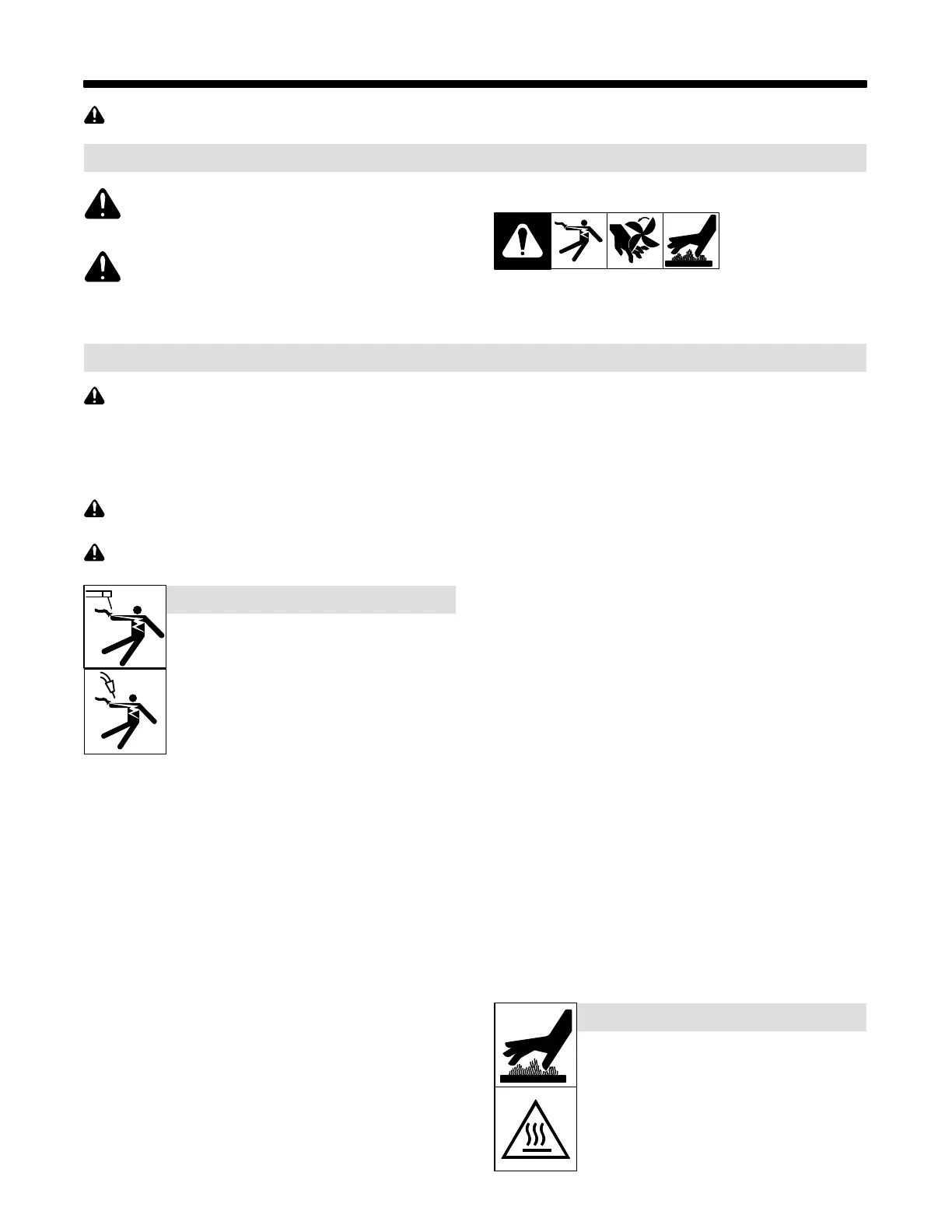 SHOCK, MOVING PARTS, and HOT PARTS hazards. Consult sym-