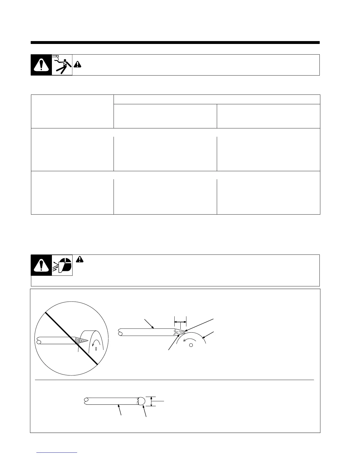 ! Grinding the tungsten electrode produces dust and flying sparks which can cause injury and start fires. Use