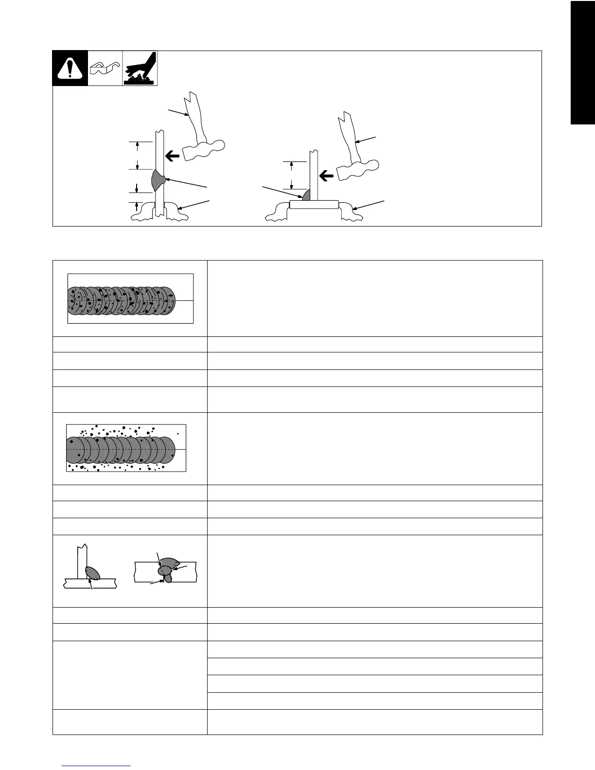 Workpiece dirty. Remove all grease, oil, moisture, rust, paint, coatings, slag, and dirt from work surface before