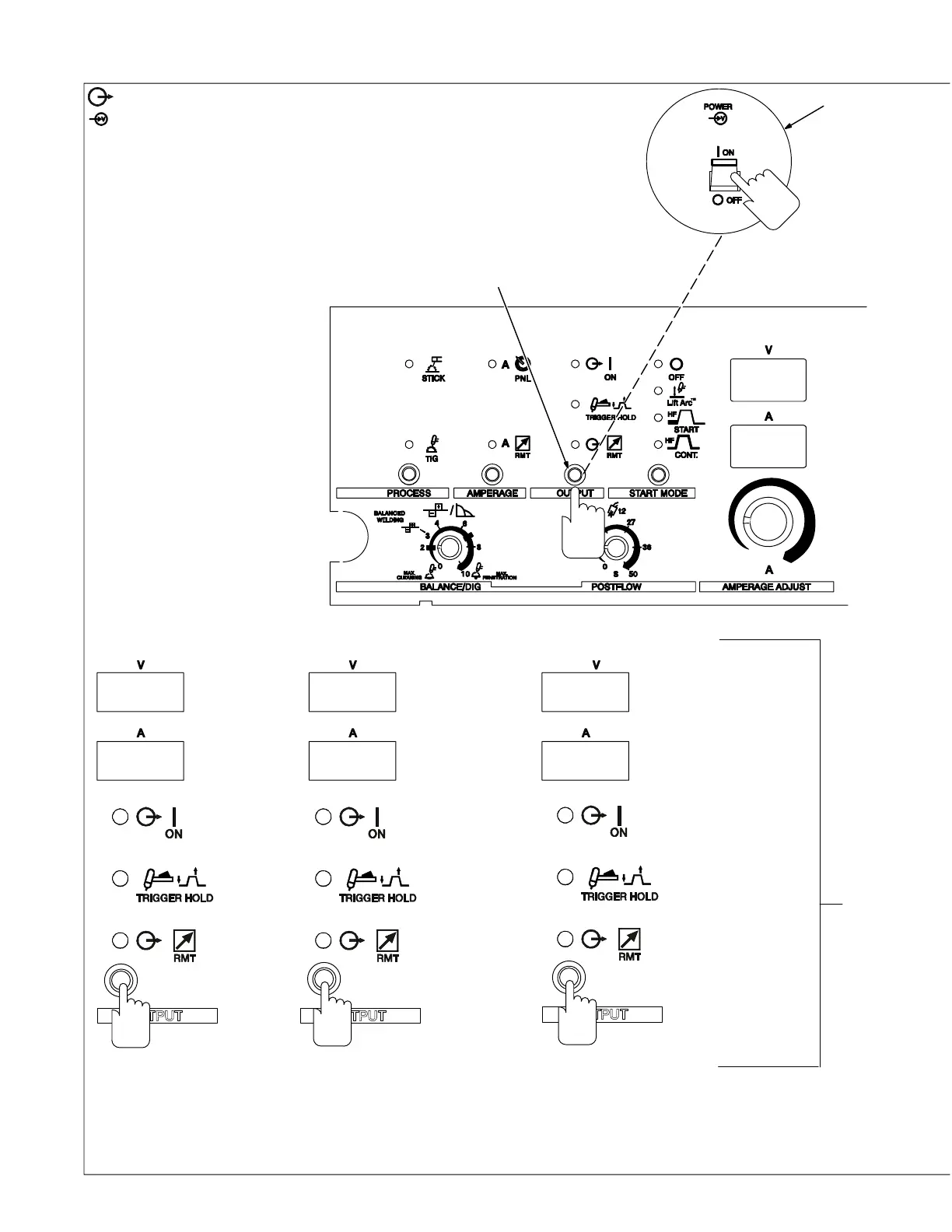 power, push and hold Output control