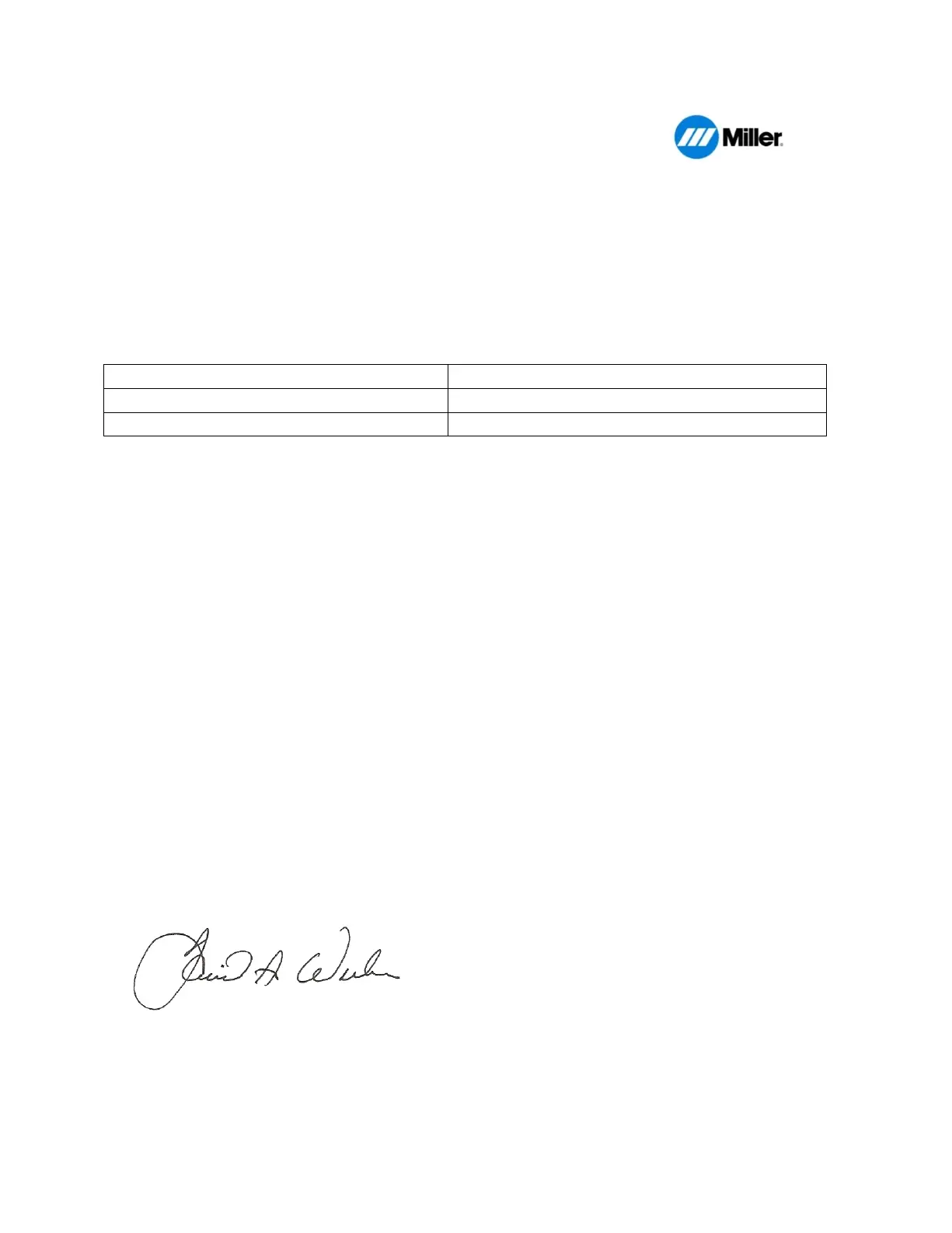 MILLER Electric Mfg. Co., 1635 Spencer Street, Appleton, WI 54914 U.S.A. declares that