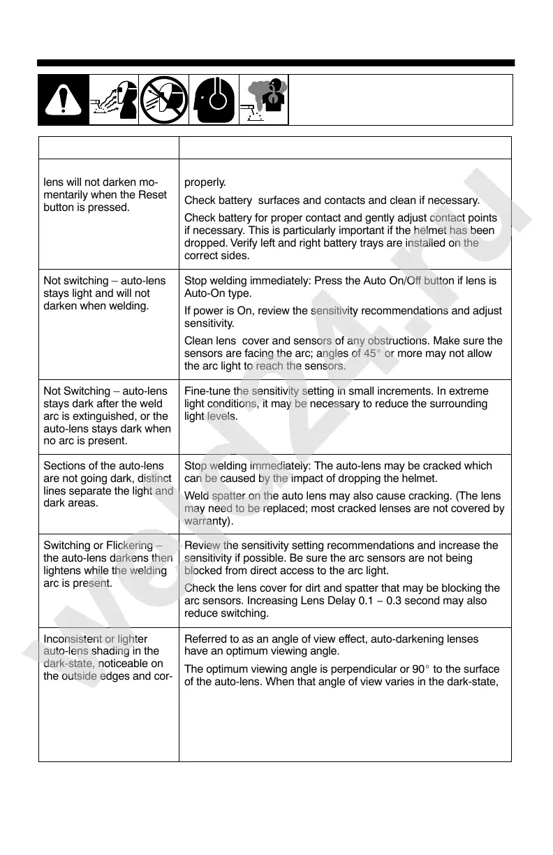 Stop welding immediately: The auto-lens may be cracked which