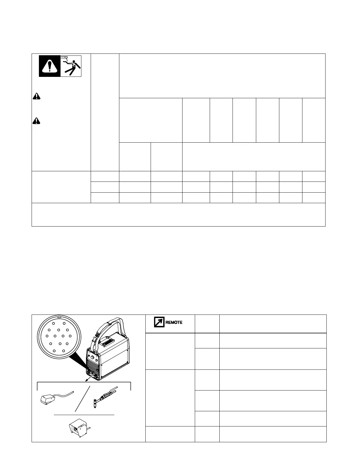 NOTICE − The Total Cable Length in Weld Circuit (see table below) is the combined length of both weld cables. For example, if the power source is