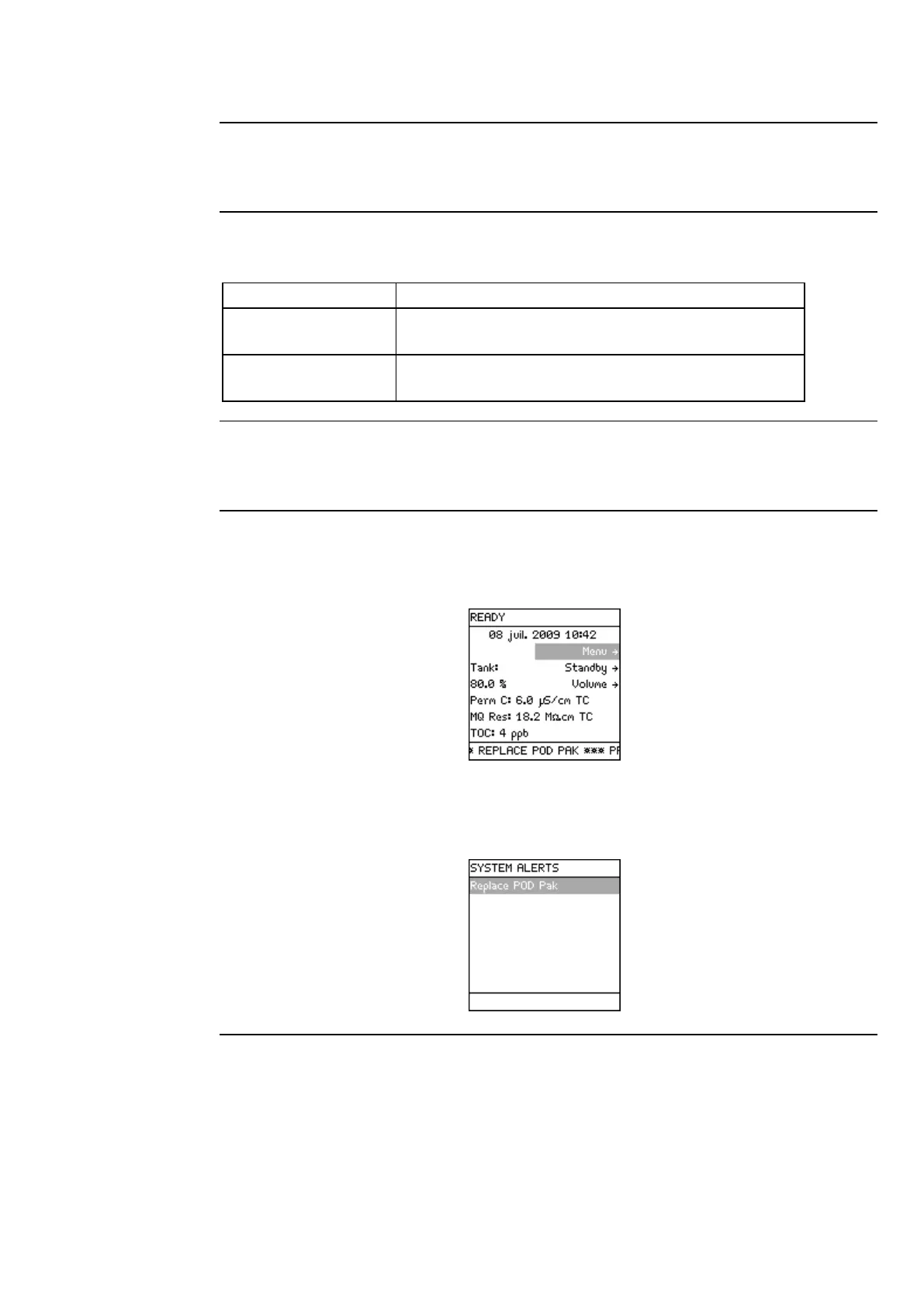 An example of a minor alert message would be REPLACE POD PAK IN 15 DAYS.