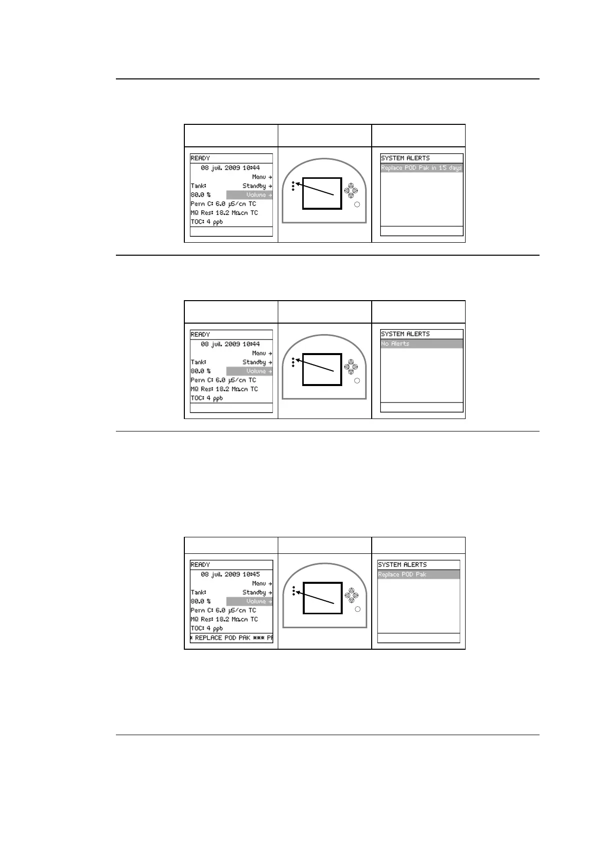 Example: Before cancelling, the Major Alert message is REPLACE POD PAK.