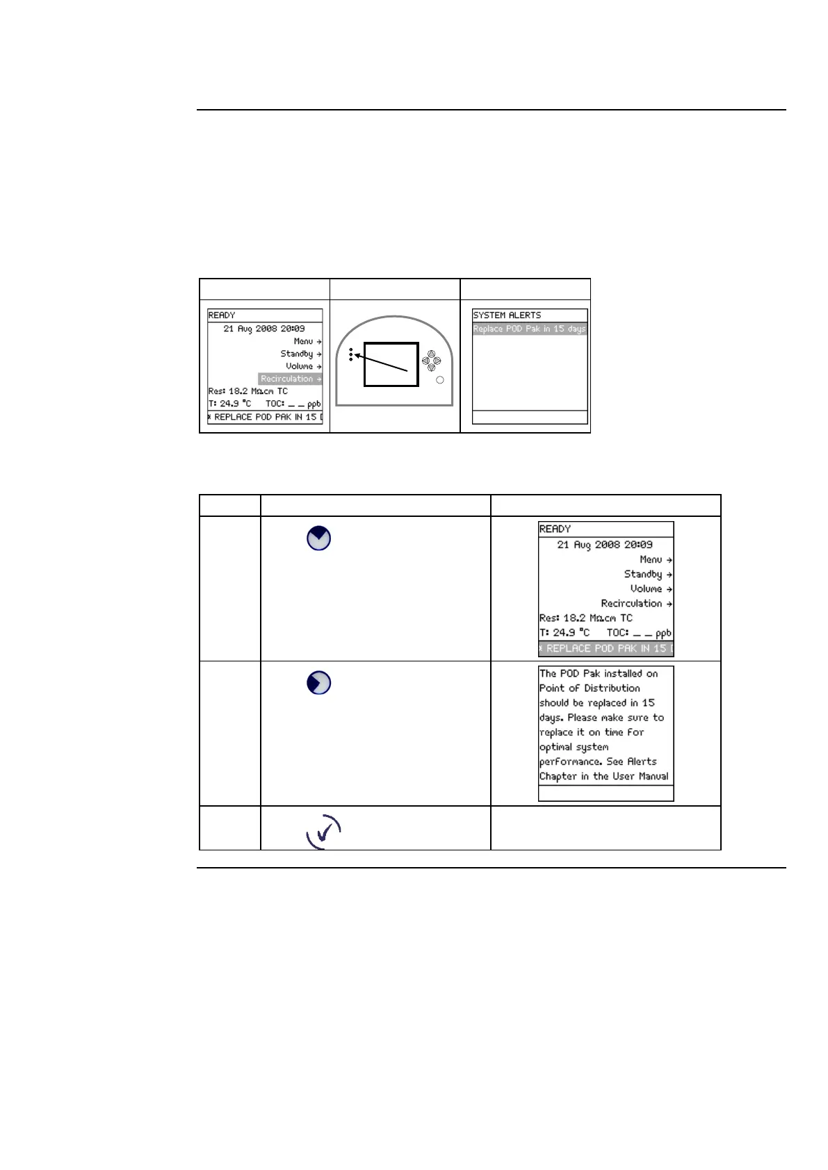 Example: Before cancelling, the Minor Alert message is <Replace POD Pak in 15 Days>.