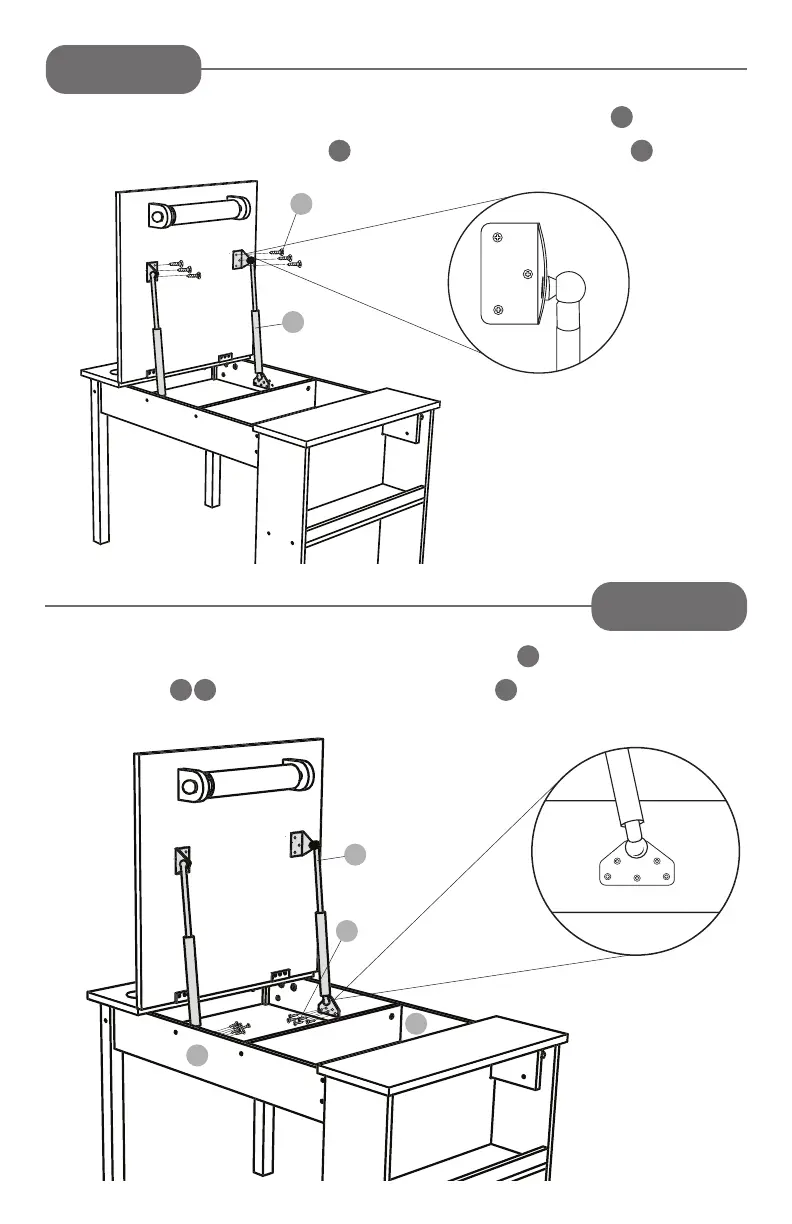 Attach the at side of the pneumatic pistons to the inside of the