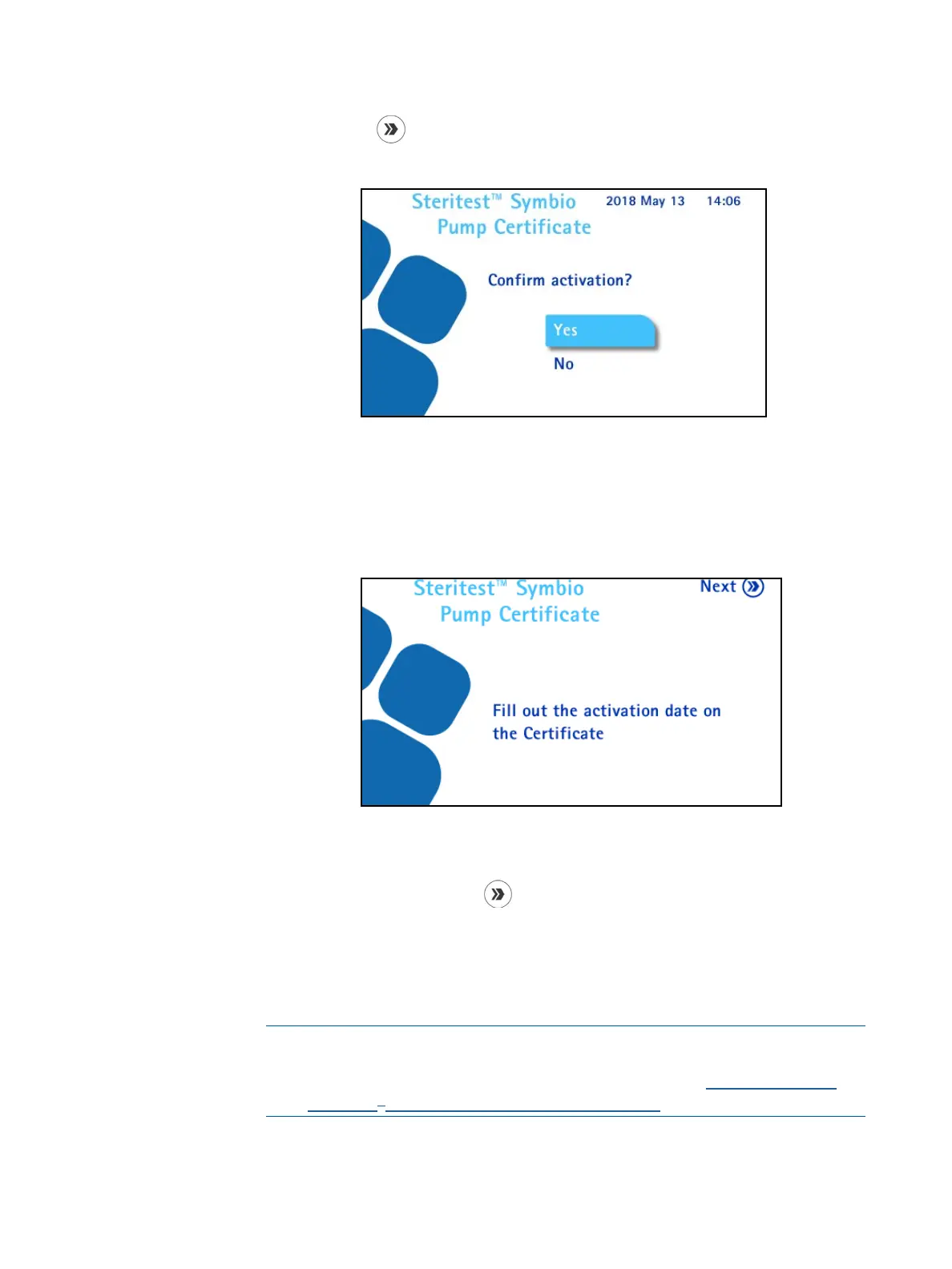 7. Press the button to continue. The Steritest