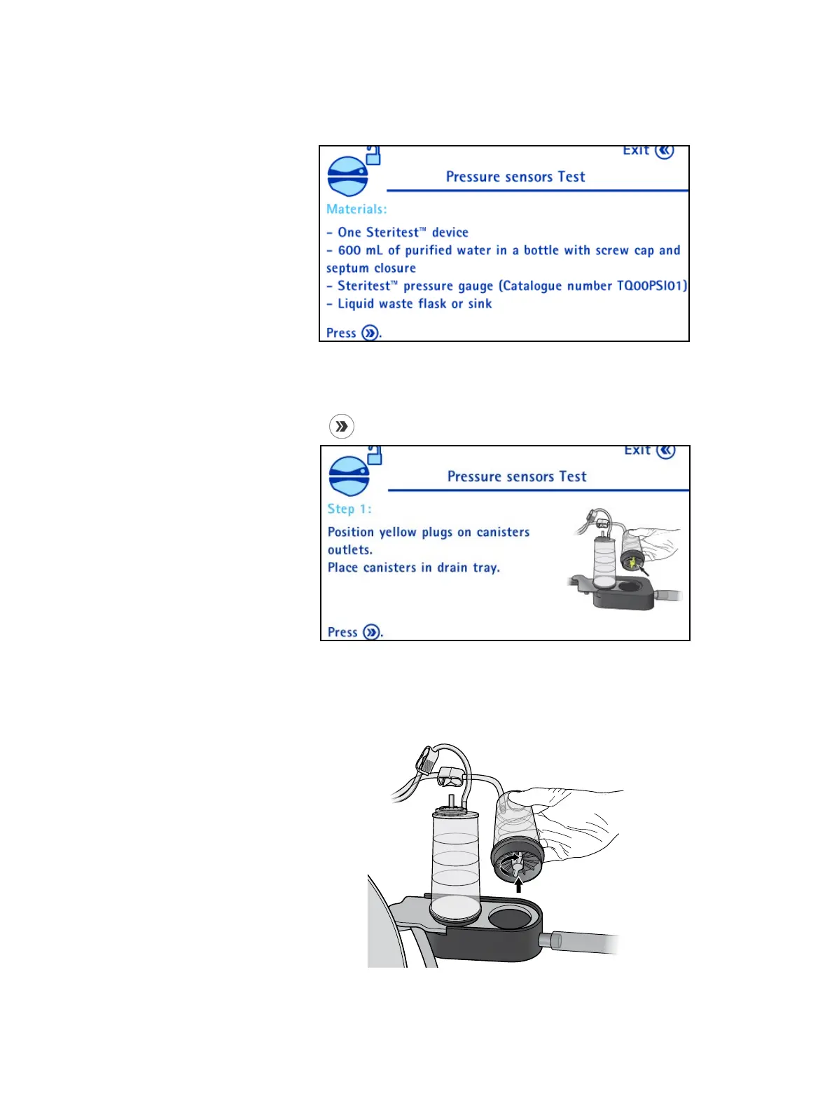 Place the two yellow plugs on the canister outlets, and place the canisters on