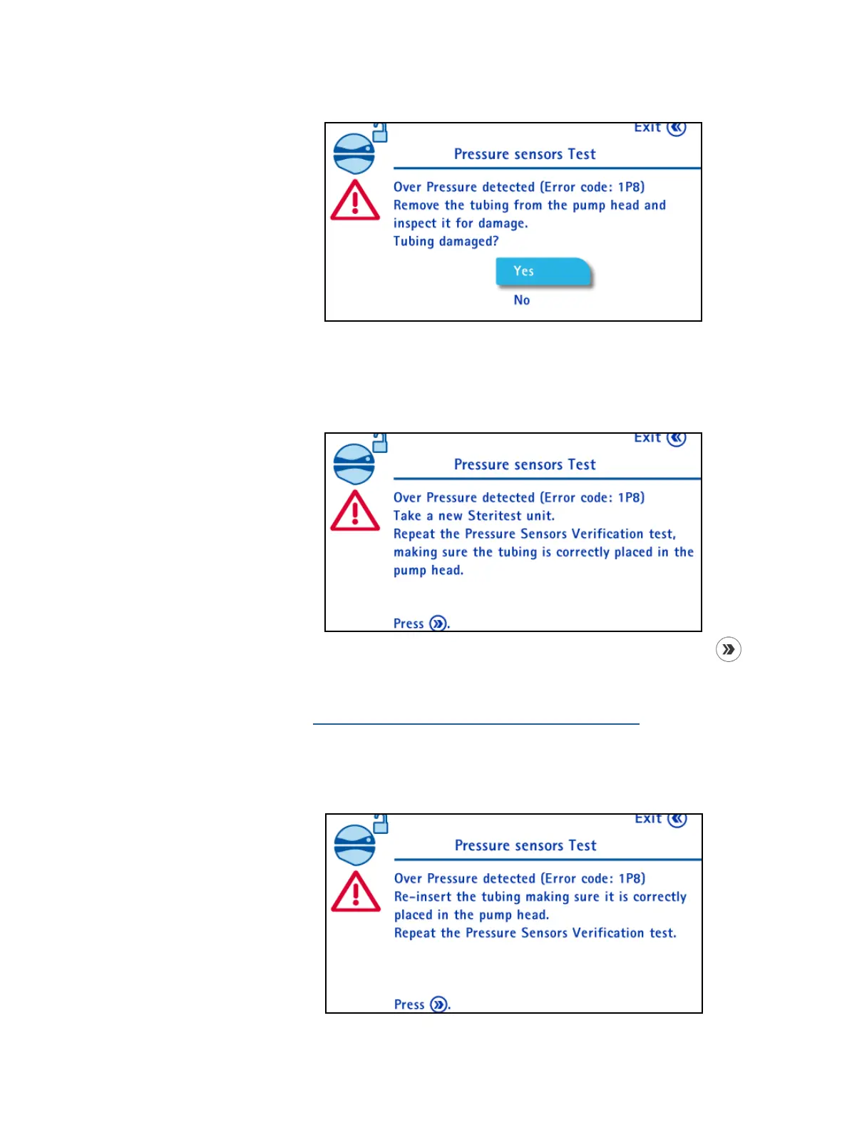 Configuring the Pump, Pressure Sensors Test.
