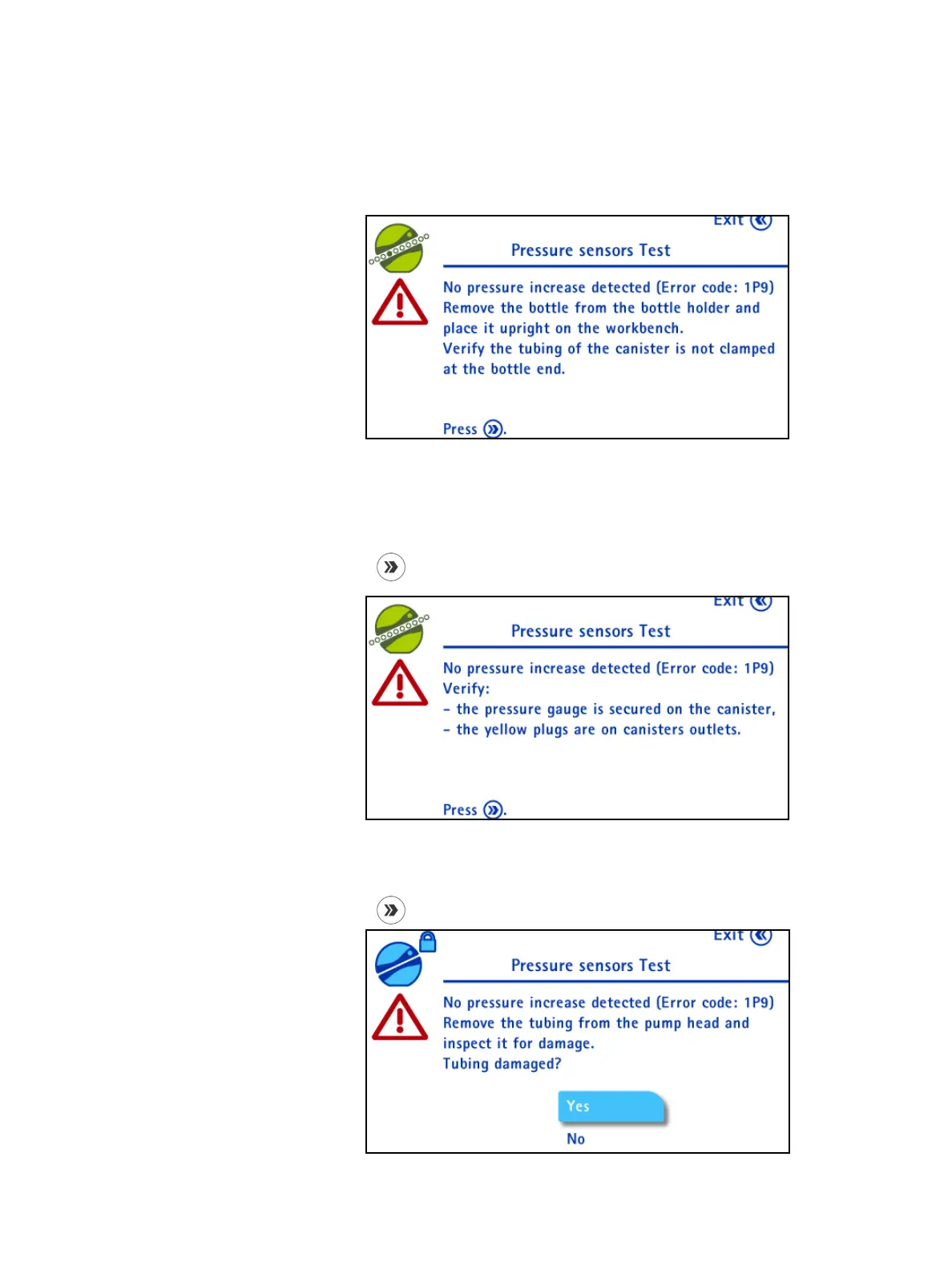 Ensure that the tubing of the tested canister is not clamped at the bottle end.