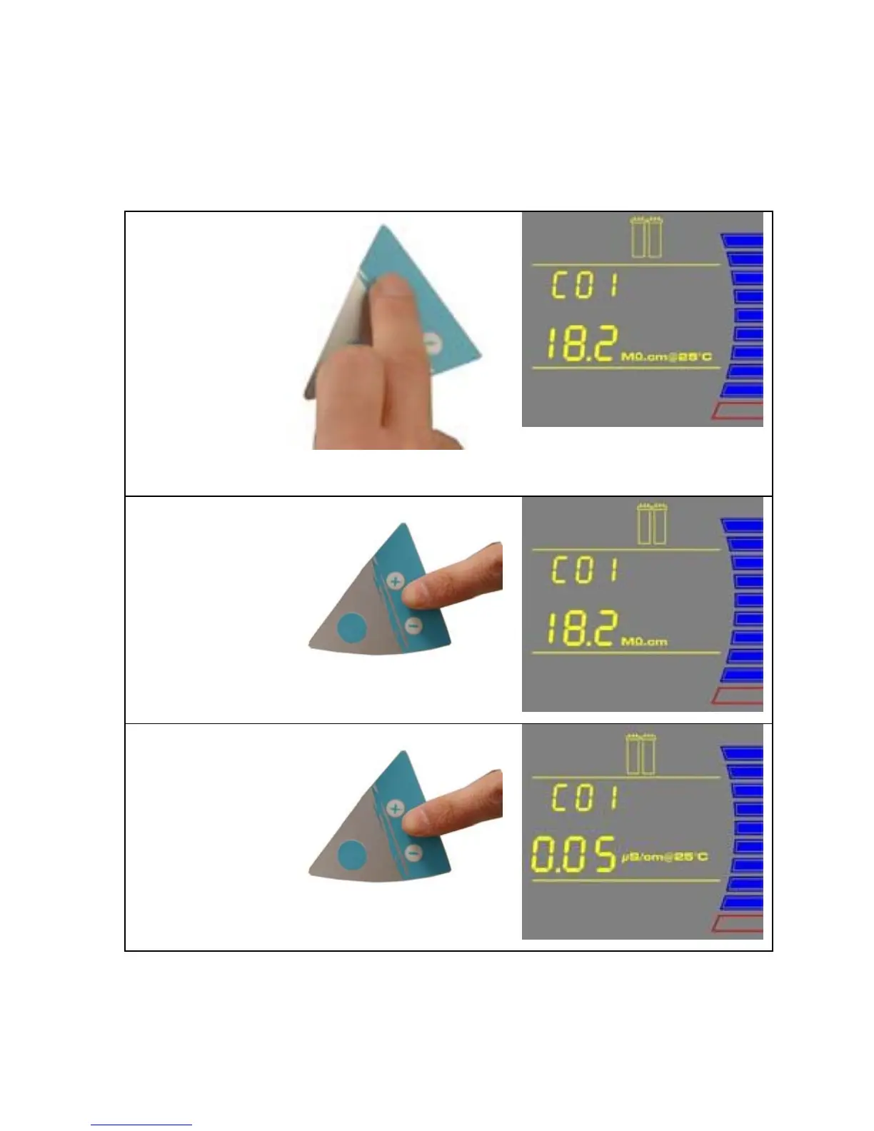 Millipore DIRECT-Q 3 SYSTEM - How to Show Resistivity or Conductivity Units (C01); With Temperature Compensated or Non Temperature Compensated Values
