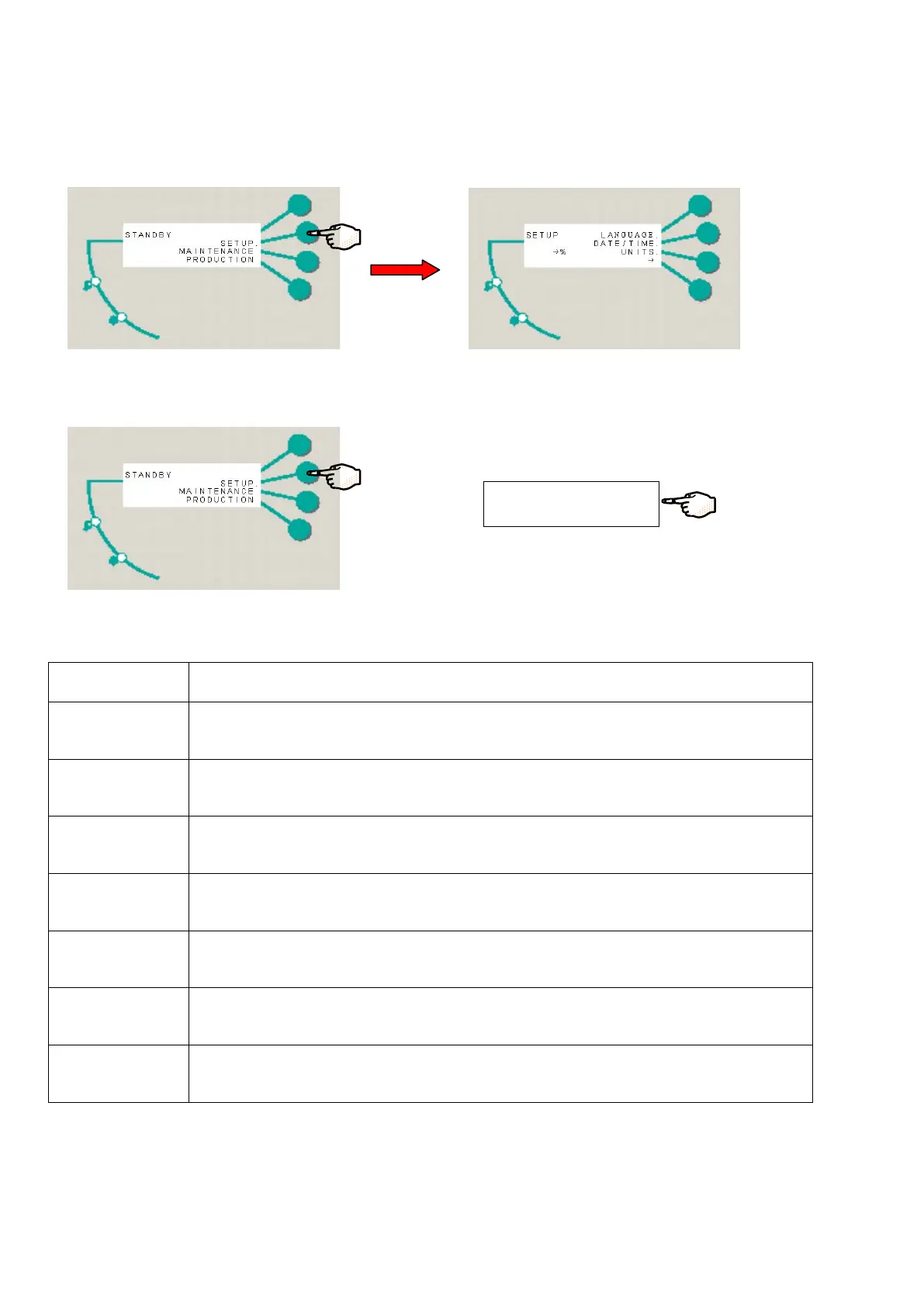 go from STANDBY Mode to SETUP Mode, you would press the Keypad as shown below.